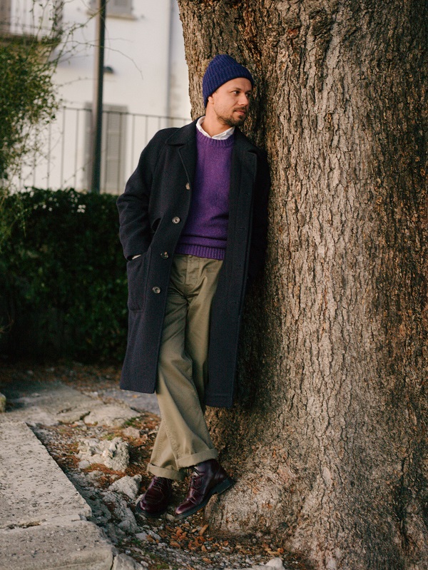Расслабленный стиль — это японские брюки и деним от Pherrow's, шетлендские джемперы и шапки от MсGeorge of Scotland, обувь от Yanko и Astorflex.