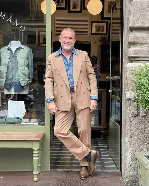Сегодня эту философию продолжают современные проводники стиля, такие как Михаэль Йондраль и Алессандро Скуарци. Эти знатоки неаполитанской элегантности мастерски вписывают деним и шамбре в свои образы, доказывая, что эти ткани идеально соседствуют с кашемиром и пиджаками ручной работы (bespoke).