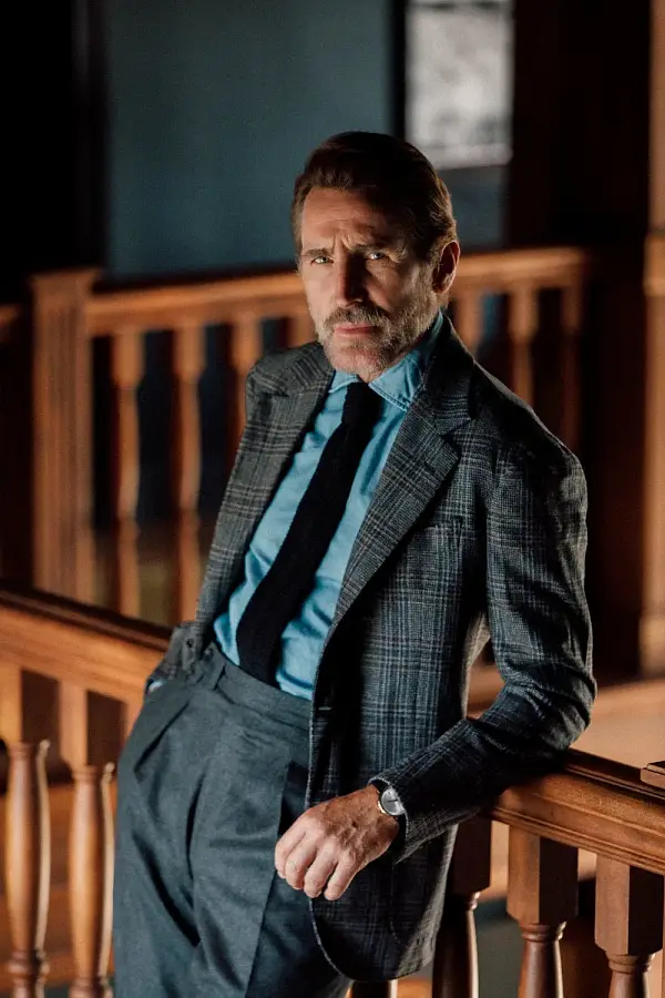 - Джеймс Бонд в «Не время умирать» (2021): В финальной части саги Дэниел Крейг демонстрирует безупречный современный образ: джинсовая сорочка с воротником button-down в сочетании с вельветовым костюмом и замшевыми ботинками-дезертами. Это воплощение функциональной элегантности, где деним выглядит органично даже в самых драматичных сценах.