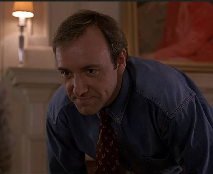 - Button-Down Denim: В фильме «Осторожно, заложник!» (1994) Кевин Спейси показал, как деним с воротником на пуговицах идеально вписывается в атмосферу расслабленного семейного рождественского вечера.