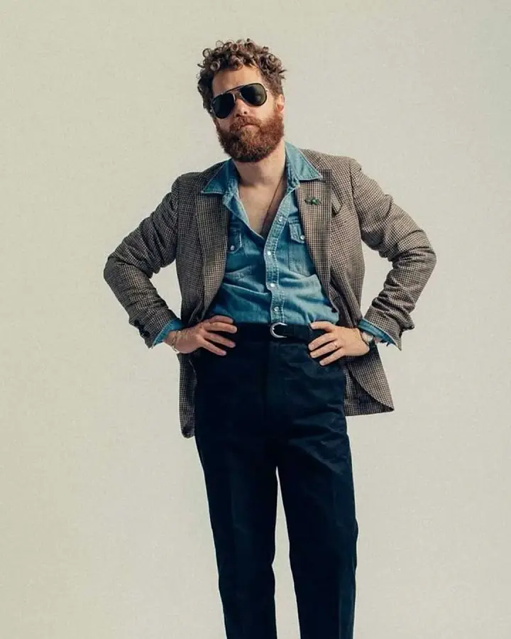 Нижний слой: Беспроигрышный вариант — брюки чинос (песочного, оливкового или темно-синего цвета), белые джинсы для летних выходов или брюки из фланели или вельвета в рубчик. Если вы выбираете «деним с денимом», следите, чтобы оттенки верха и низа заметно отличались.