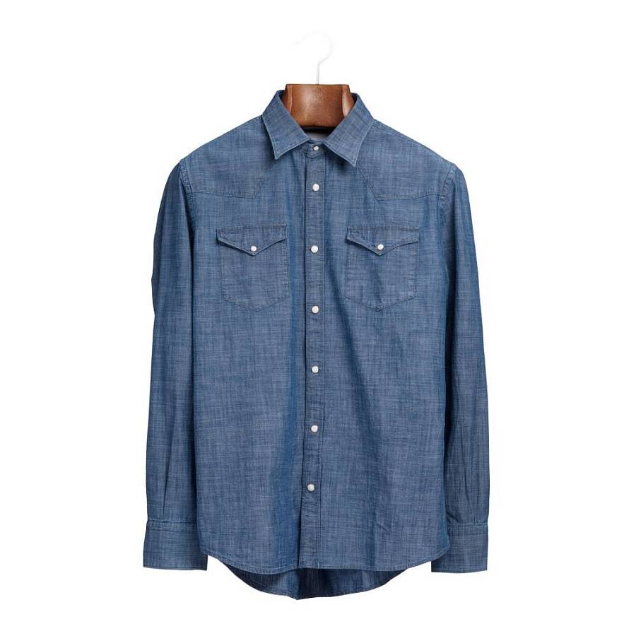 Деним — это каноническая саржа (twill), где окрашенная нить основы цвета индиго переплетается с белой уточной нитью. Хлопок для сорочек тоньше брючного, но структура остается неизменной. Любопытно, что изначально деним не должен был выцветать, но именно эта способность к благородному старению стала его определяющей характеристикой.