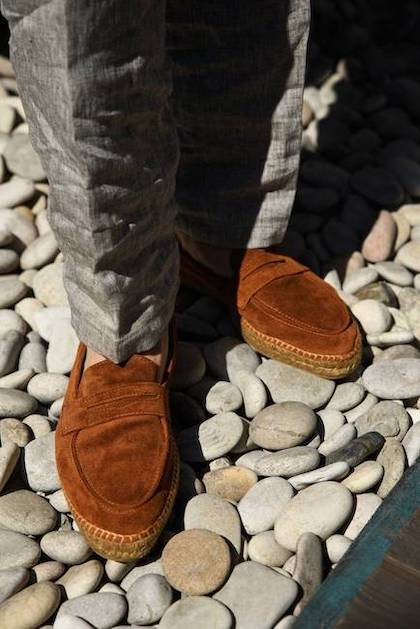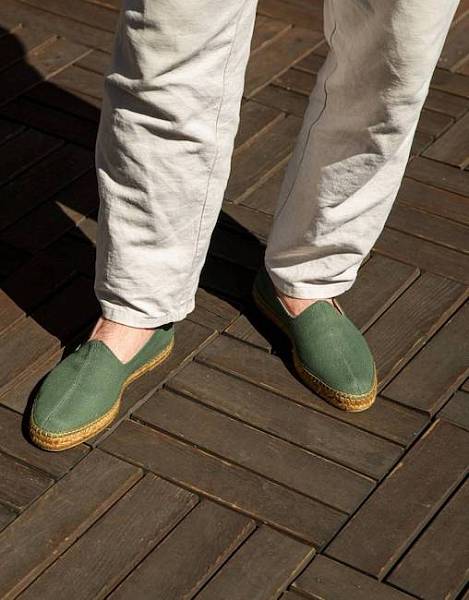 В случае с обувью, на наш взгляд, одними из лучших вариантов являются лоферы-эспадрильи от испанского бренда Castañer, классические эспадрильи от Castañer и Manebí, а также сандалии от французского бренда Jacques Solovière. Кроме того, стоит упомянуть замшевые слипоны от нашего бренда Artisan, сандалии от английской марки Sanders, эспадрильи со шнурками от Jacques Solovière и эспадрильи-топсайдеры от Manebí.Лоферы-эспадрильи Castañer Nacho