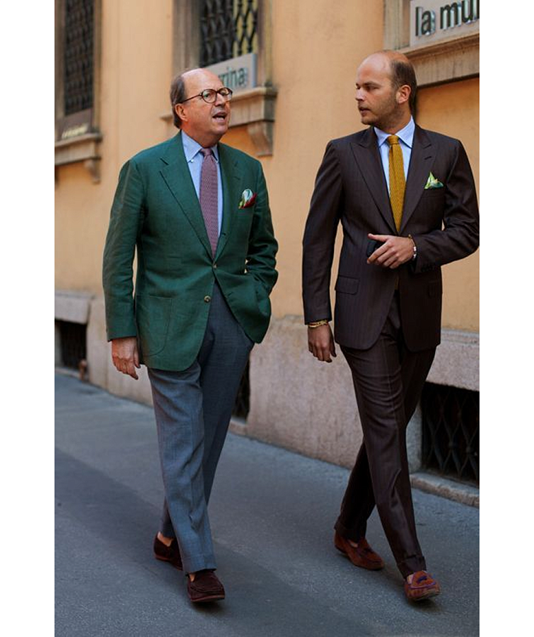 Некоторые стильные мужчины XX века: Энтони Иден, Кэри Грант, Дуглас Фербенкс-младший, герцог Виндзорский, Фред Астер, Гэри Купер, Джанни Аньелли, Хамфри Богарт, Джон Кеннеди, Марчелло Мастроянни, Рональд Рейган, Шон Коннери (в том числе в роли Джеймса Бонда), Стив Маккуин, Уинстон Черчилль.