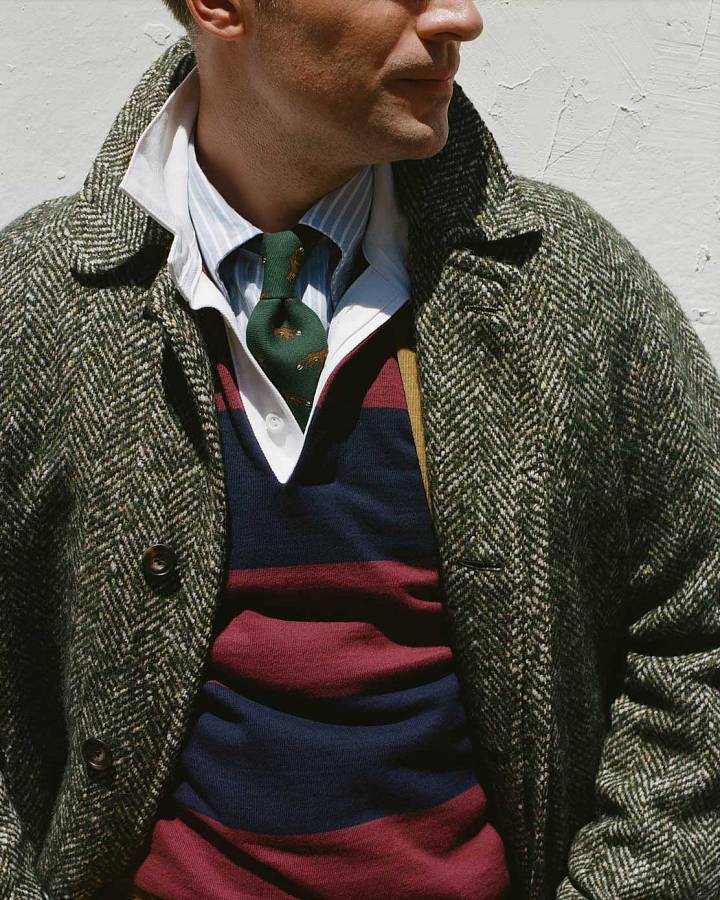 В качестве верхнего слоя также идеально подойдут твидовый пиджак, блейзер, твидовое пальто, плащ из габардина или куртка-харрингтон. Это квинтэссенция стиля Rugged Ivy, актуальная вне времени.