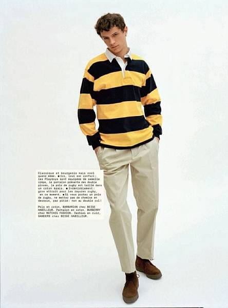 Интеграция спортивной одежды в повседневный гардероб — один из самых захватывающих аспектов мужской моды последнего столетия. До начала XX века аутентичная спортивная экипировка была привилегией высшего класса. Чтобы быть атлетом и носить специальную одежду для охоты, гребли, тенниса или гольфа, требовались колоссальные ресурсы и свободное время. Ситуация изменилась только после Первой мировой войны, когда рост уровня жизни открыл мир спорта для масс. Лучшим исследованием на эту тему остается социальная история «Длинные выходные» Роберта Грейвса и Алана Ходжа — она блестяще объясняет, как досуг начал диктовать правила нашему гардеробу. Именно на этой волне перемен родилась и стала культовой одна из самых знаковых вещей — регбийка.