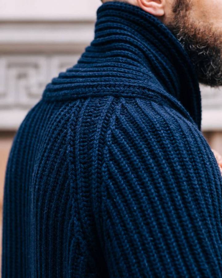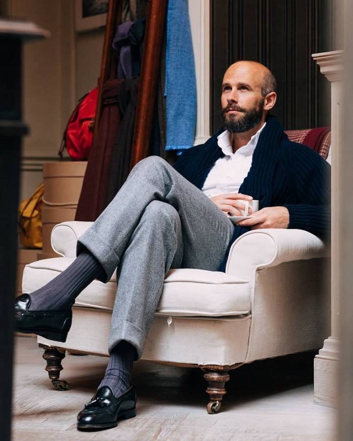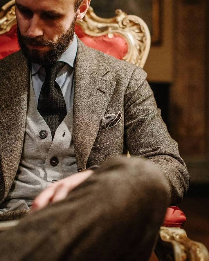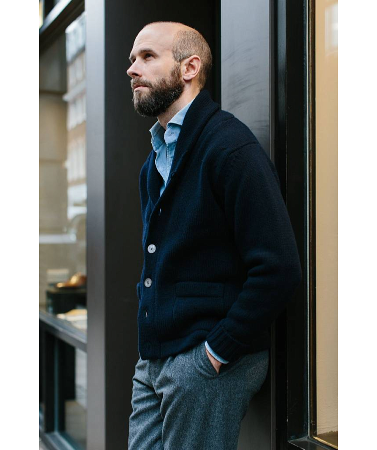 В случае с образами без пиджака попробуйте шерстяные кардиганы объёмной вязки. Некоторые образцы от британских, ирландских и даже итальянских производителей бывают весьма толстыми, плотными и тёплыми. Дополнить такой кардиган можно вязаным галстуком; кроме того, подойдут и фактурные галстуки с низкой степенью официальности – например, из так называемого дикого шёлка (shantung silk). Можно, конечно, обойтись и без галстука.