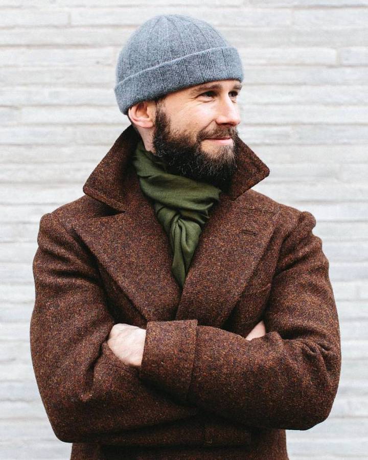 На голову в морозные дни вам, скорее всего, придётся надеть шапку, потому что шляпы и почти все классические кепки не закрывают уши. Лучше всего отдать предпочтение какой-нибудь нейтральной по стилю модели из шерсти, кашемира или смеси этих материалов (хлопок для мороза не подойдёт). «Нейтральная» не означает «скучная»: у некоторых марок есть шапки с ненавязчивыми вкраплениями цветных ниток, а также в меру яркие однотонные изделия. Конечно, единственная шапка в гардеробе не должна быть красной или зелёной, но вы вполне можете иметь пару совершенно нейтральных шапок и одну яркую.