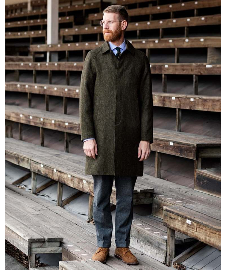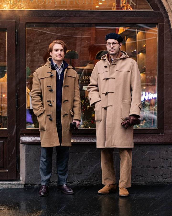 Что использовать в качестве верхней одежды? Попробуйте пальто и плащи из классического и тяжёлого британского или ирландского твида. Весьма тёплыми являются традиционные дафлкоты, но в случае с этой одеждой об элегантности речь уже не идёт (хотя стильные образы с дафлкотами вполне возможны). Стоит упомянуть и другие традиционные пальто из шерстяных тканей: лоден, поло, ольстер и коверкот. Выбирайте модели из 100% шерсти либо из овечьей шерсти с добавками кашемира и альпака – без синтетики. Для сильных морозов подойдут относительно строгие пуховики наподобие модели Auchavan от Mackintosh, но элегантных пуховиков, на наш взгляд, всё равно не бывает.