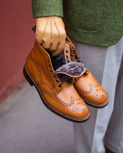 Верх обуви, подходящей для российской зимы, может быть сшит из гладкой телячьей или коровьей кожи, зернистой кожи, жированной кожи или жированного нубука. Избегайте окрашенных вручную моделей: их внешность может заметно ухудшиться после ходьбы по слякоти и реагентам. Материал подкладки остаётся на ваше усмотрение: кому-то необходимо иметь в гардеробе ботинки с подкладкой из меха, а кто-то ограничивается экземплярами с простой кожаной подкладкой. Для долгих прогулок по морозу, конечно, мех или какая-нибудь тёплая высокотехнологичная синтетика будет оптимальным вариантом.