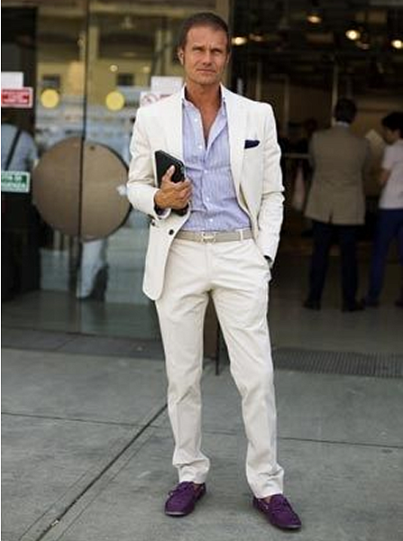 Необходим ли к замшевой обуви ремень из замши, а к туфлям из кордована – ремень из аналогичной кожи? Нет – и поэтому в первую очередь мы рекомендуем обзаводиться ремнями из гладкой телячьей кожи, так как они являются самыми универсальными. Такие ремни даже в сочетании с ботинками из зернистой кожи выглядят совершенно приемлемо, а вот ремень из зернистой кожи в комбинации с ботинками из гладкой кожи может смотреться странновато. Кроме того, он, как правило, неудачно сочетается с типично летней одеждой типа льняных костюмов.