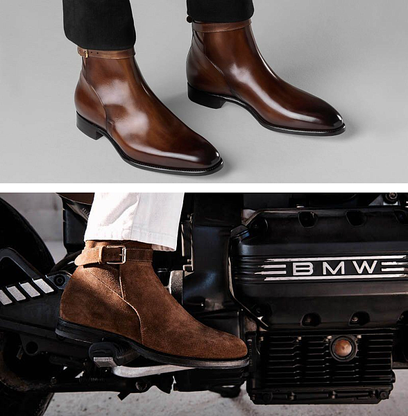 Эта модель встречается значительно реже, чем челси. Надевается и снимается такая обувь чуть сложнее и дольше, но дело обходится без завязывания и развязывания шнурков. Как и монки, сапоги джодхпур оснащены ремешками и пряжками, однако ремешки у них длиннее, а берцы (боковины) пришиты под союзкой, а не поверх неё. Другими словами, есть и конструктивные, и визуальные различия.