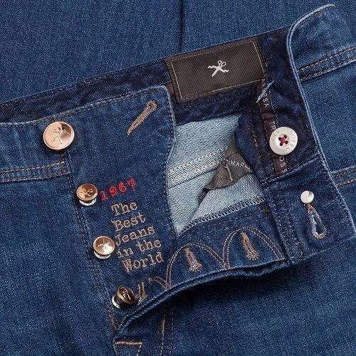 Отметим, что у джинсов Tramarossa есть также уникальные детали. Они могут похвастать сдвоенными петлями для ремня, причём таких пар петель – шесть. Всего петель — двенадцать (напомним, на масс-маркетных джинсах подобных петель всего пять). Кроме того, джинсы Tramarossa имеют дополнительную пуговицу на поясе (она гарантирует более ровную посадку, но при желании её можно игнорировать), а все пуговицы-болты являются подвижными, — то есть легко застёгиваются.