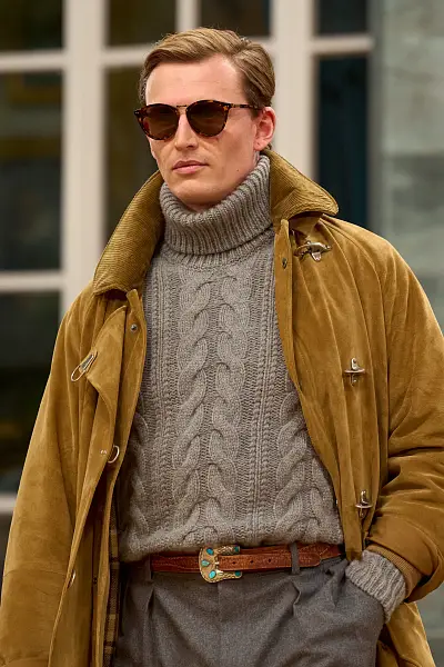 Эту традицию продолжает Алессандро Скуарци — икона современного street style и преданный поклонник винтажной эстетики. Скуарци сделал вестерн-ремень своей визитной карточкой: он мастерски сочетает его со своими знаменитыми белыми брюками, джинсовыми куртками и классическими лоферами. Его пример доказывает, что этот аксессуар способен придать аристократичный шарм и мужскую харизму любому повседневному образу.