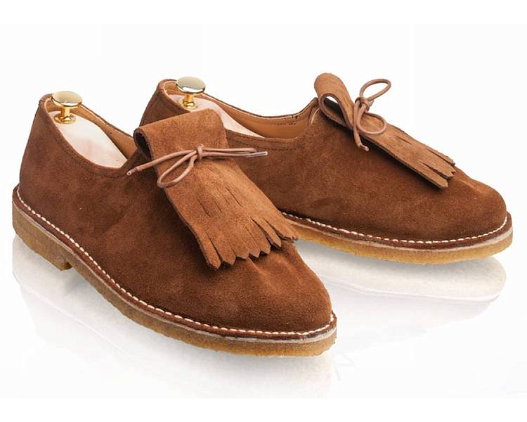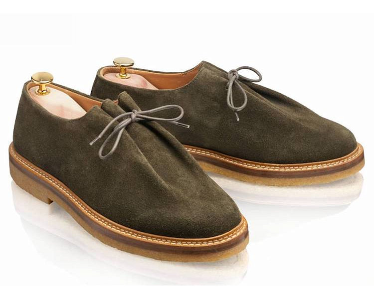 Эти оригинальные и неформальные модели похожи друг на друга и имеют ряд общих черт, включая уникальный дизайн шнуровки и характерную для Jacques Solovière складку под шнурками. И к Ray, и к Calvi прилагается килт с бахромой, которым при желании можно закрыть вышеупомянутую складку. Обе эти модели сделаны в Португалии из высококачественной замши и оснащены внешними подошвами из натурального каучука с шершавой текстурой, а также промежуточными подошвами из натуральной кожи. Теперь перейдём к описанию различий. У модели Ray промежуточные подошвы довольно толстые, а у Calvi они тоньше; кроме того, у Ray имеется рант, пришитый к верху и промежуточным подошвам, в то время как у Calvi рант отсутствует, а верх немного вывернут по краям и пришит напрямую к промежуточным подошвам. Кроме того, внешние подошвы в случае с моделью Calvi только приклеены к промежуточным, а в случае с туфлями Ray они ещё и пришиты по технологии Blake. Наконец, модель Calvi оснащена полноразмерной подкладкой, а у модели Ray подкладка только частичная (при этом в обоих случаях материалом для подкладки служит неокрашенная кожа растительного дубления, которая прекрасно «дышит»).В фотогалерее ниже сначала показаны снимки модели Calvi, а затем – снимки модели Ray.