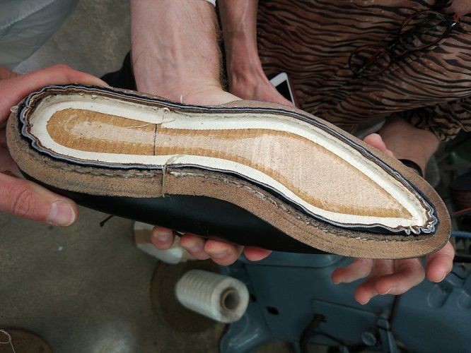 Первое, что замечаешь при входе на фабрику - красивый и продуманный интерьер. Кажется, что ты не на обувном производстве, а в дорогом бутике: великолепные деревянные двери между холлами, панели на стенах, кожаные кресла в выставочных залах, резные столы в переговорных комнатах. На конвейерной линии огромное внимание уделяют деталям. Здесь нет атмосферы спешки и желания быстрее завершить одну операцию и приступить к следующей. Это касается не только сложных процессов, так каких как резка кожи и прошивание ранта, но и окраски, и даже упаковки! На каждом этапе создания пары сотрудники старательно выверяют миллиметры и со всей ответственностью подходят к делу. Такой темп работы обеспечивает выпуск примерно 200 готовых пар в день и, как следствие, высокое качество сборки.