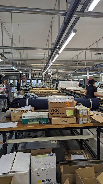 Время близилось к обеду. Все меньше и меньше людей становилось в подразделениях. Кажется, самыми первыми на обед ушли швеи. Проходя мимо швейного цеха, хотелось бы хоть одним глазком взглянуть на то, как различные части собираются в готовое изделие. Но похоже, что они раньше всех пришли на работу и соответственно первыми ушли на обед. Наконец, мы с Марко добрались до стадии проверки и контроля качества одежды. Здесь каждая единица тщательно проверятся сотрудником на наличие дефектов. Внимание уделяется швам, пуговицам, симметрии и другим важным аспектам. После чего изделие упаковывается и ждёт своего часа в отделе отгрузки.