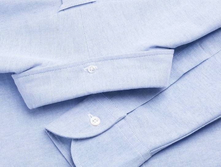 Воротники OCBD рубашек Drake's делаются в конструкции non-fused. Прокладка в них вшита, но не приклеена – и вкупе с грамотным кроем это позволило получить классический элегантный изгиб. Дополнительным бонусом является третья маленькая пуговица, расположенная на задней части воротника (при желании её можно не застёгивать).