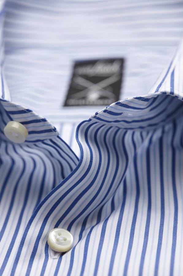 Следующий важный момент – пуговицы. Van Laack размещает на передней части рубашки восемь пуговиц – и это большая редкость в мире готовых сорочек (ready-to-wear), так как почти все производители ограничиваются семью пуговицами, а некоторые даже шестью. Большое число пуговиц помогает добиться гармоничного внешнего вида. Кроме того, следует отметить, что все пуговицы сорочек van Laack пришиты на так называемой «ножке» («черенке») из ниток – такая особенность помогает им надёжно удерживаться на своих местах в течение всего срока службы рубашки, а также улучшает внешний вид изделия, так как «ножка» слегко приподнимает пуговицу над тканью, и в результате ткань под застёгнутыми пуговицами не морщится.