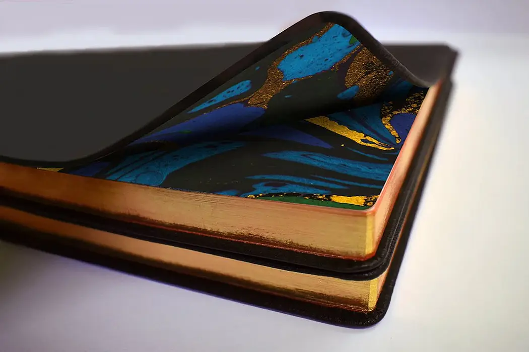 Для создания продукции используют лучшую кожу, бумагу и материалы. Вся работа происходит с опорой на традиционные методы переплетного дела и высочайшее мастерство. Завершает процесс изысканная отделка, включающая тиснение горячей фольгой, позолоченные срезы страниц и шелковые ленточные маркеры.
