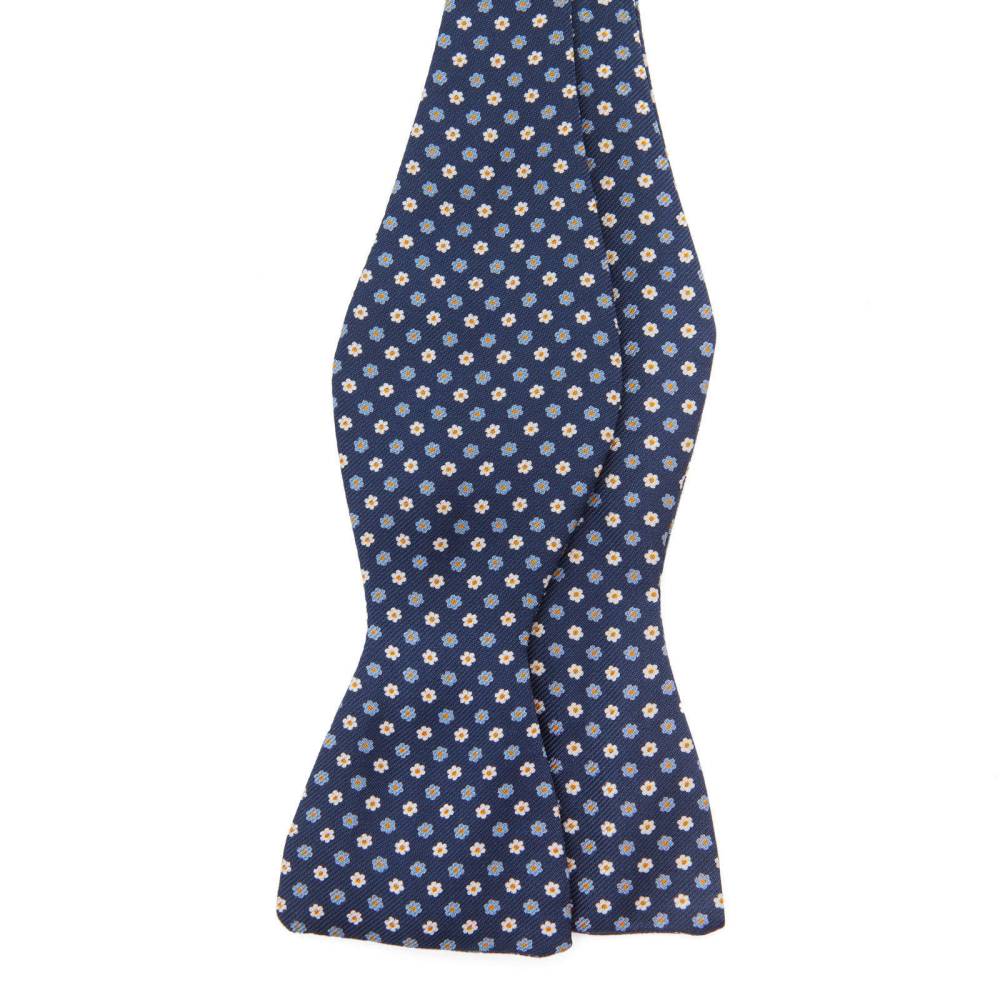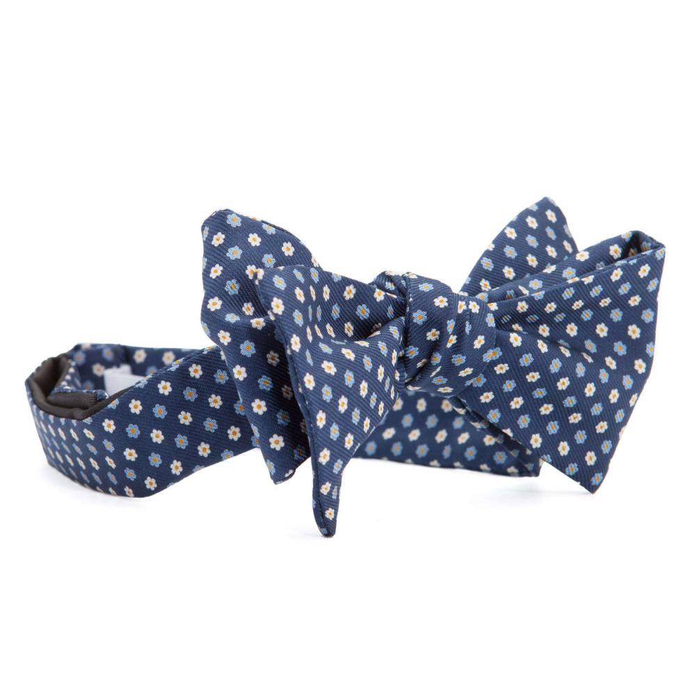 Яркая мужская бабочка из высококачественной шёлковой ткани синего цвета с контрастным цветочным узором. Размер регулируется при помощи пластиковой застёжки. Бабочка сделана вручную на небольшой итальянской фабрике семейного бренда Petronius в Милане. Больше 80 лет в этом ателье занимаются пошивом роскошных аксессуаров из отборных натуральных тканей. Продукция Petronius представлена в старейших бутиках и универмагах мира, среди которых Barney's и Bergdorf Goodman в Нью-Йорке.