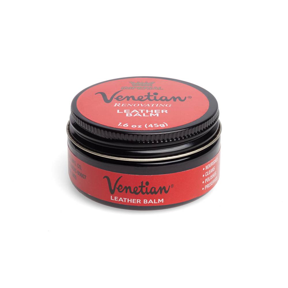 Venetian Imperial Balm чёрного цвета. Лучший бальзам с плотной консистенцией для всех видов гладких кож. Изготовлен из высококачественных натуральных ингредиентов: смеси восков, полезных кондиционеров и масел со специальными пигментами для восстановления цвета и состояния кожи. Обогащён пчелиным воском, маслом ши и ланолином для дополнительного питания. Обеспечивает превосходную патину при полировке до блеска.
