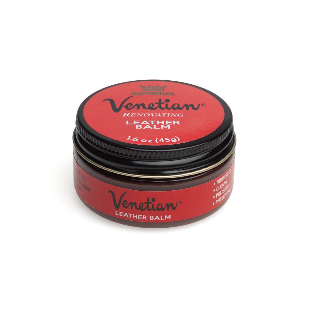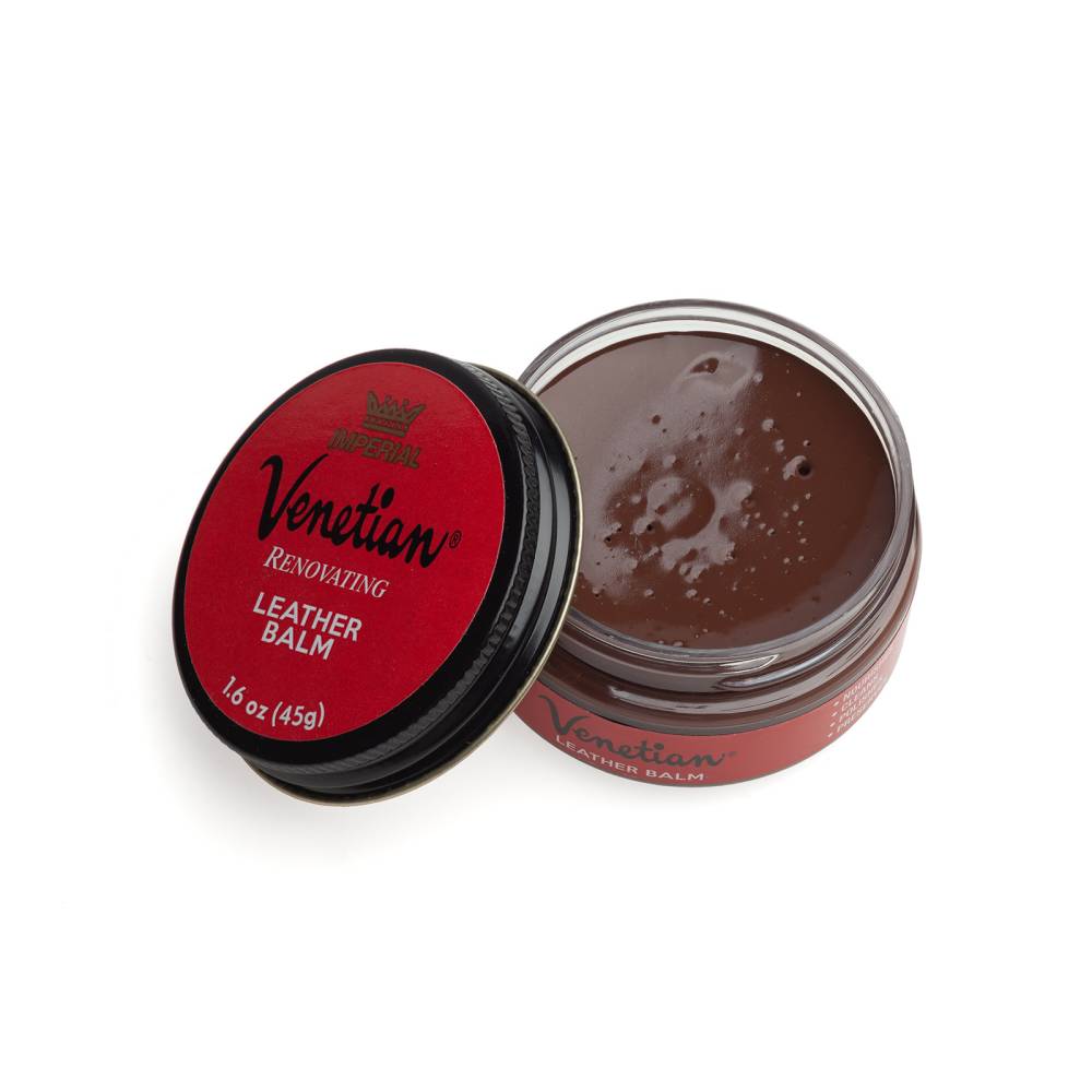 Venetian Imperial Balm коричневого цвета. Лучший бальзам с плотной консистенцией для всех видов гладких кож. Изготовлен из высококачественных натуральных ингредиентов: смеси восков, полезных кондиционеров и масел со специальными пигментами для восстановления цвета и состояния кожи. Обогащён пчелиным воском, маслом ши и ланолином для дополнительного питания. Обеспечивает превосходную патину при полировке до блеска.