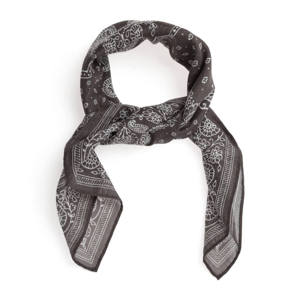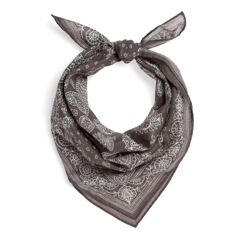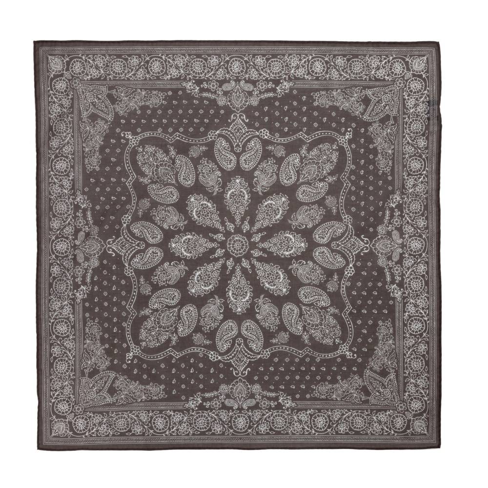 Стильная бандана Arcuri из тонкой, приятной на ощупь хлопковой ткани. Аксессуар коричневого цвета с традиционными белыми витиеватыми узорами пейсли. По всему периметру края подшиты вручную. Размер банданы позволяет удобно повязывать её всевозможными узлами на шее или же носить в заднем кармане джинсов. Элегантный аксессуар, который становится все более популярным в классическом гардеробе, добавляя изысканный акцент образу.