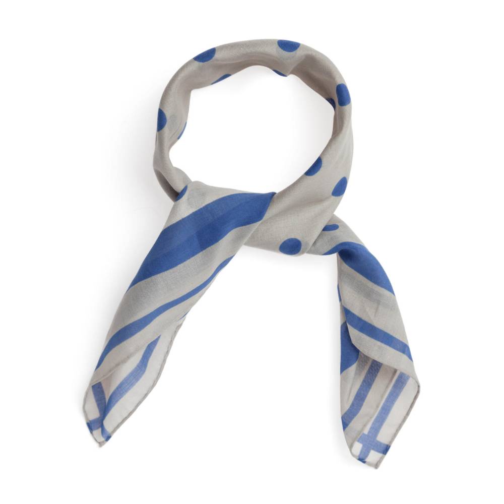 Стильная бандана Arcuri из тонкой, приятной на ощупь хлопковой ткани. Аксессуар светло-бежевого цвета в синий горох и полосами вдоль краев. По всему периметру края подшиты вручную. Размер банданы позволяет удобно повязывать её всевозможными узлами на шее или же носить в заднем кармане джинсов. Элегантный аксессуар, который становится все более популярным в классическом гардеробе, добавляя изысканный акцент образу.