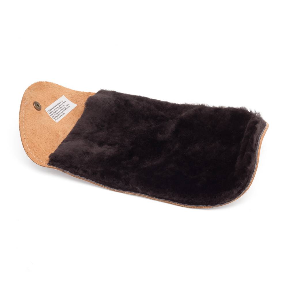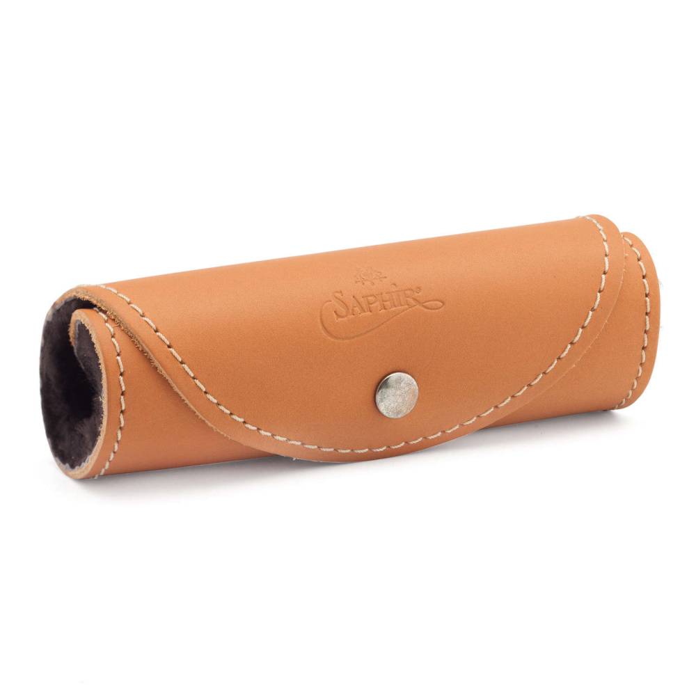 Бархотка Saphir незаменимый аксессуар в наборе по уходу за обувью. Она предназначена для финишной обработки поверхности кожи. После того как крем впитался в кожу и появился глянец, при помощи бархотки необходимый участок обуви полируется до зеркального блеска. С внешней стороны бархотка выполнена из матовой кожи бежевого оттенка, а с внутренней из натуральной шерсти. Модель компактно скручивается и застегивается на металлическую кнопку.