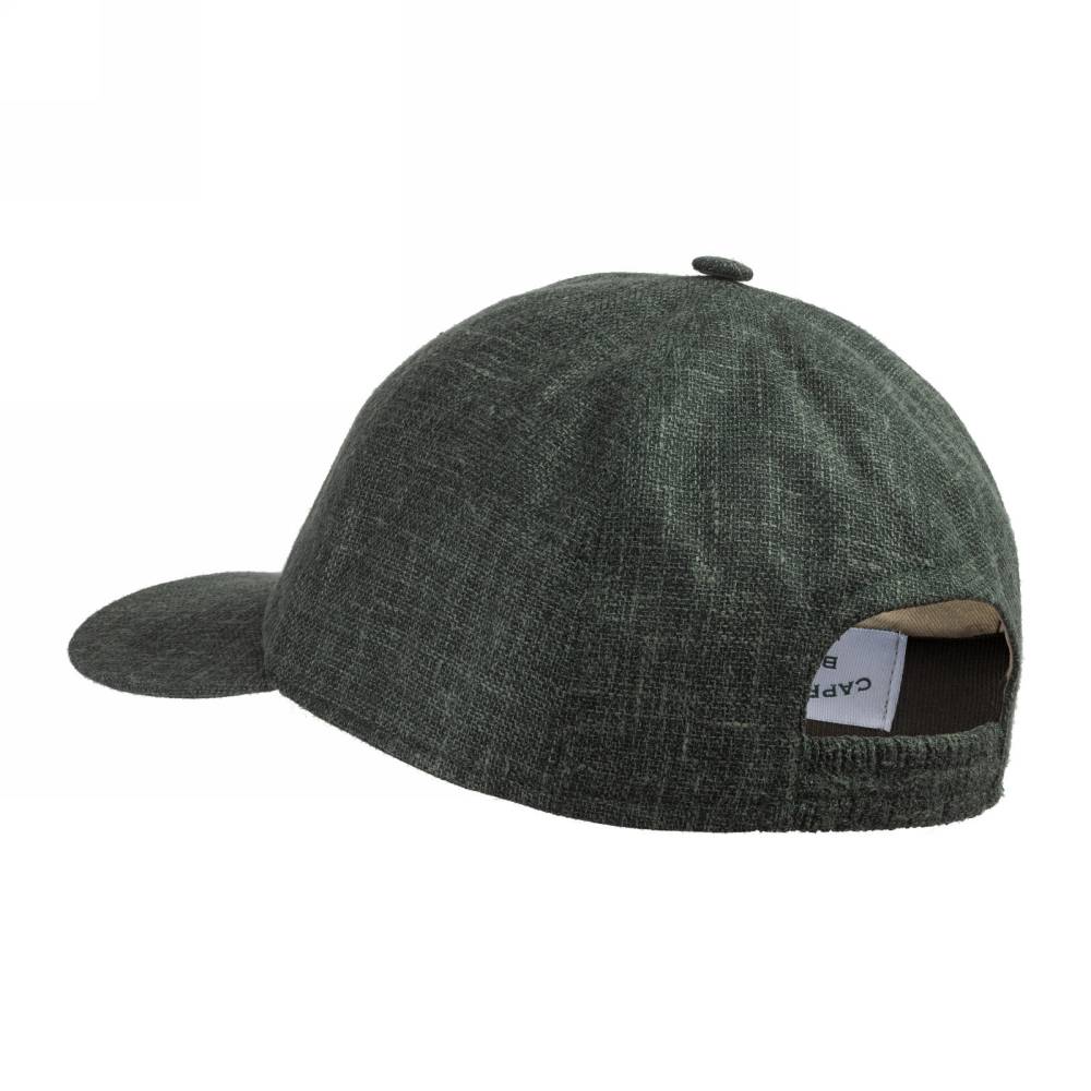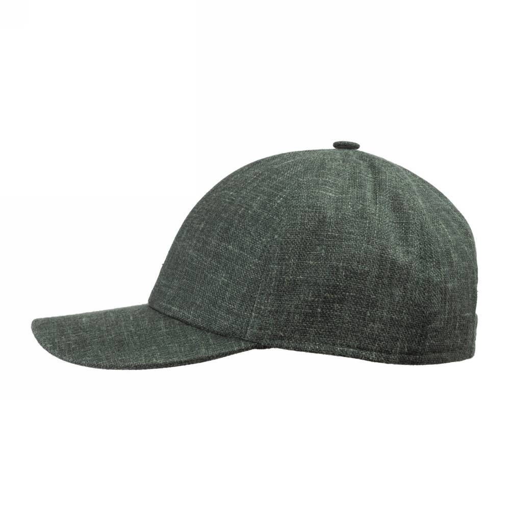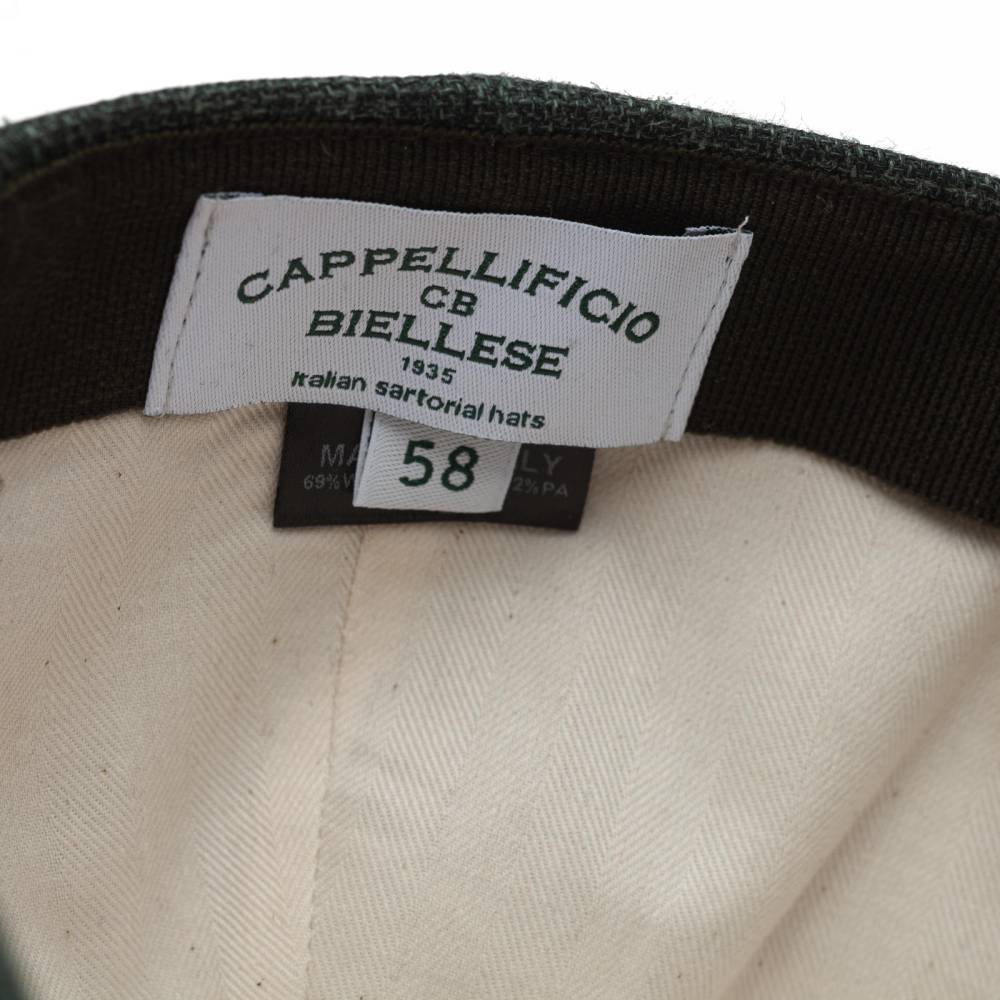 Лёгкая бейсболка ручной работы Cappellificio Biellese выполнена из фактурной приятной на ощупь костюмной ткани Fratelli Tallia di Delfino зелёного цвета. Подкладка из мягкого хлопка фирмы Dragoni. Так как модель создана мастерами ателье, она адаптирована под классический стиль. Задний ремешок вшит и является эластичным. Этот факт играет важную роль при подборе, так как необходимый размер будет комфортнее ощущаться на голове.