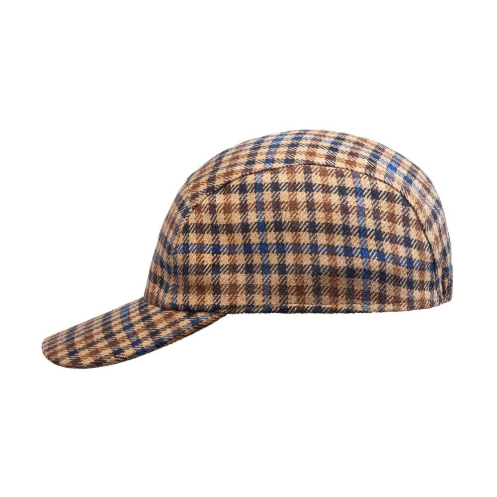 Бейсболка ручной работы Cappellificio Biellese выполнена из мягкой костюмной ткани Fratelli Tallia di Delfino, в состав которой входят шерсть и кашемир. Подкладка из ворсистого хлопка фирмы Dragoni. Так как модель создана мастерами ателье, она адаптирована под классический стиль. Задняя часть полностью закрыта и является эластичной. Этот факт играет важную роль при подборе, так как необходимый размер будет комфортнее ощущаться на голове.