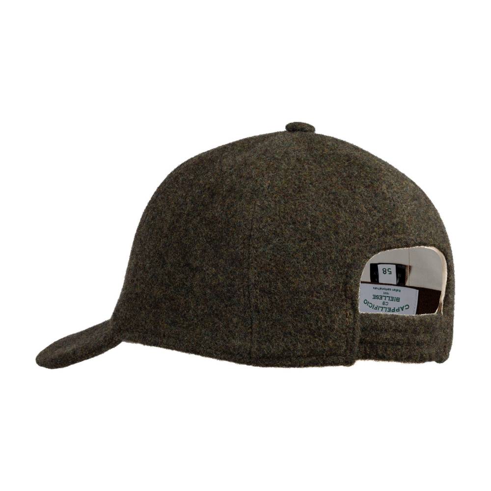 Тёплая бейсболка ручной работы Cappellificio Biellese выполнена из плотной мягкой ткани Fratelli Tallia di Delfino, в состав которой входят шерсть и кашемир. Подкладка из фактурного хлопка фирмы Dragoni. Так как модель создана мастерами ателье, она адаптирована под классический стиль. Ремешок вшит и является эластичным. Этот факт играет важную роль при подборе, так как необходимый размер будет комфортнее ощущаться на голове.