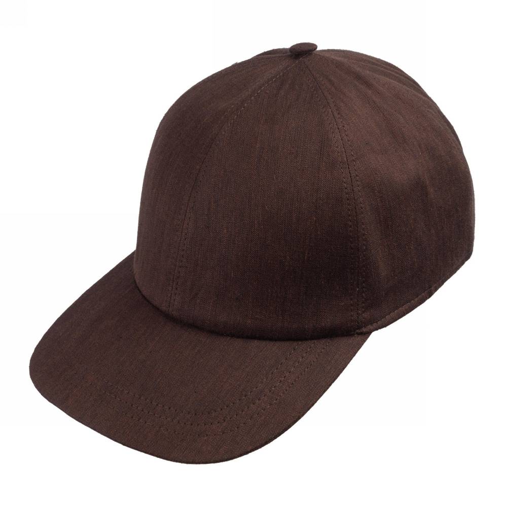 Лёгкая бейсболка ручной работы Cappellificio Biellese выполнена из фактурной ткани соларо от фабрики Fratelli Tallia di Delfino тёмно-коричневого цвета в мелкую ёлочку. Подкладка из мягкого хлопка фирмы Dragoni. Так как модель создана мастерами ателье, она адаптирована под классический стиль. Задний ремешок вшит и является эластичным. Этот факт играет важную роль при подборе, так как необходимый размер будет комфортнее ощущаться на голове.