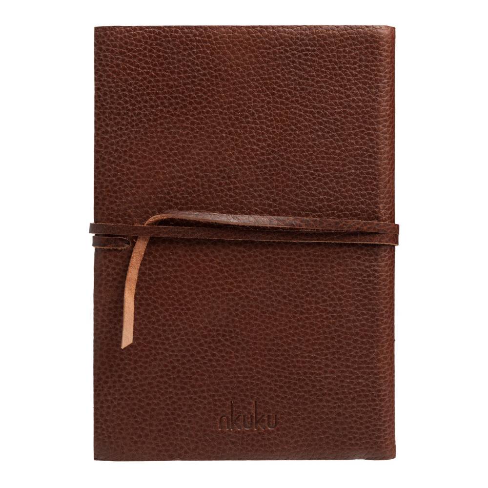 Блокнот английского эко-бренда Nkuku формата A5. Великолепный аксессуар ручной работы из экологически чистых материалов. Обложка выполнена из натуральной кожи тёмно-коричневого цвета с зернистой текстурой. Особенностью изделия является бумага: она приятна на ощупь, имеет характерную текстуру и естественный оттенок. Примечательно то, что эта бумага производится не из срубленной древесины, а из вторичного сырья – хлопчатобумажной ткани. Лимитированный экземпляр. 80 страниц.