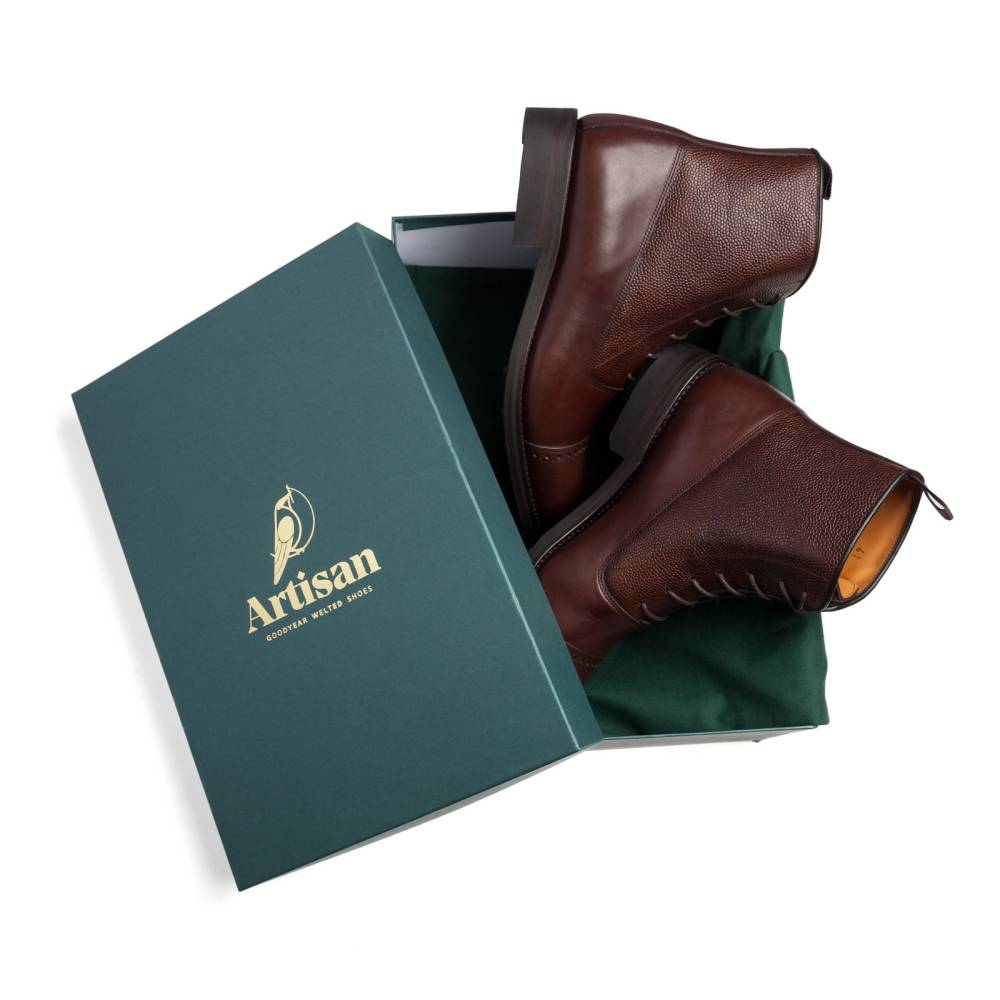 Лаконичные высокие ботинки испанского бренда Artisan для повседневного гардероба. Отлично подойдут для города осенью и зимой. Верх выполнен из гладкой и зернистой кожи коричневого цвета. Внутри цельная стелька из тонкой мягкой кожи. Модель имеет прочную подошву из резины. Все строчки верха и швы ранта выполнены с особой аккуратностью, согласно философии бренда. Конструкция Goodyear Welted.
