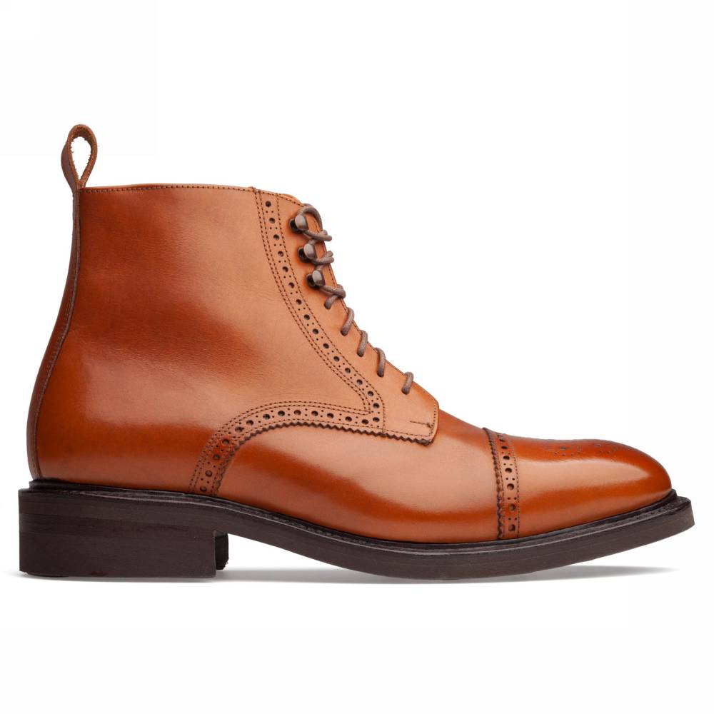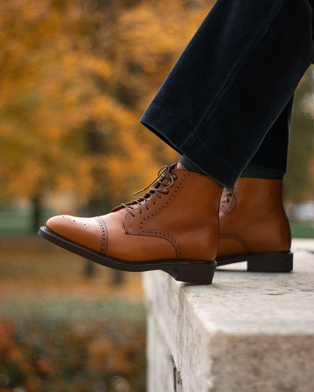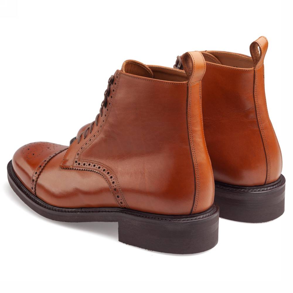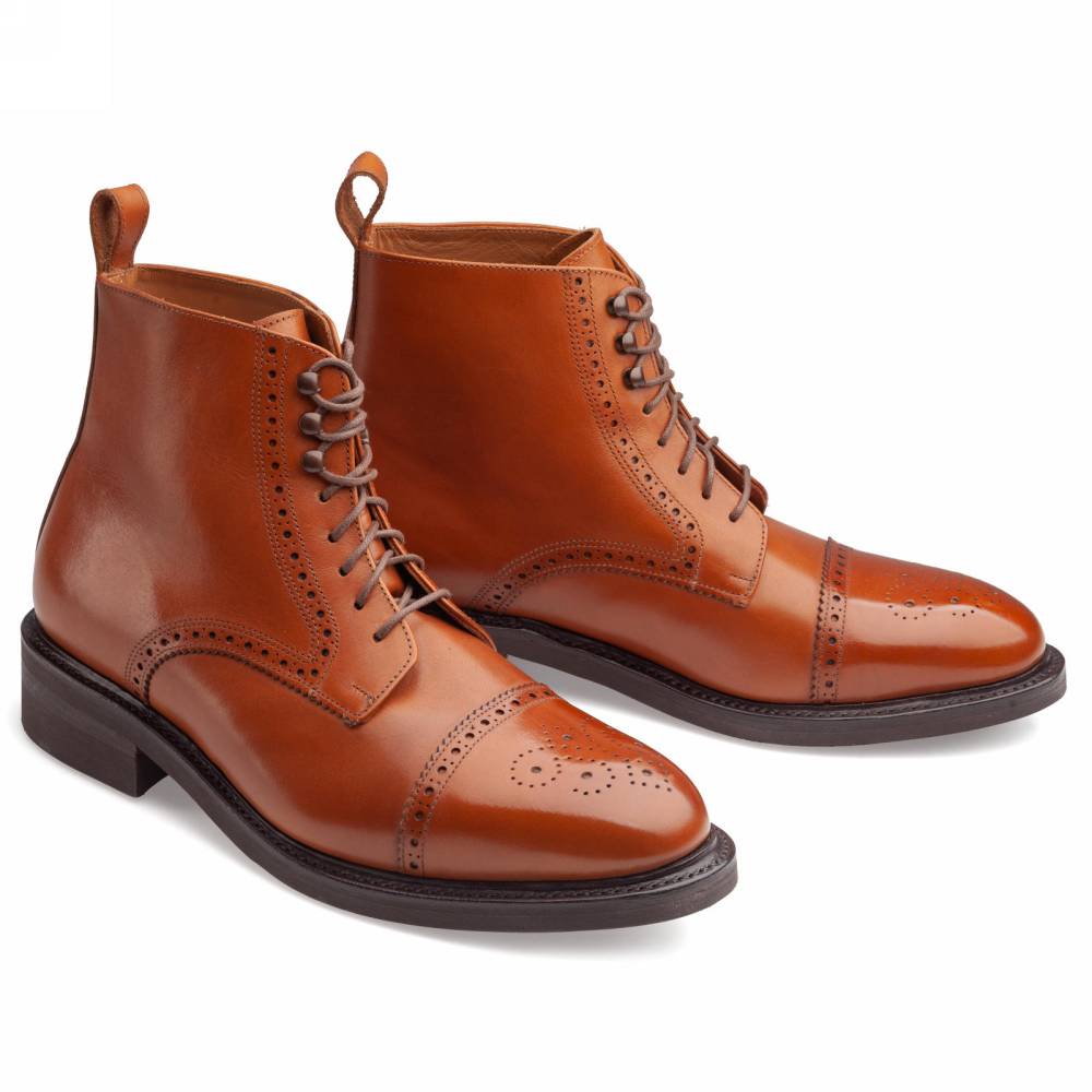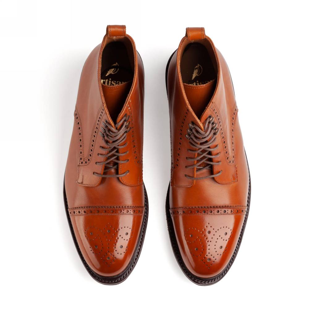 Ботинки испанского бренда Artisan для повседневного осеннего и зимнего гардероба. Верх выполнен из гладкой телячьей кожи коньячного оттенка и украшен традиционными перфорированными узорами. Внутри цельная стелька из тонкой мягкой кожи. Модель имеет прочную подошву из резины и штормовой рант, защищающий от проникновения влаги. Конструкция Goodyear Welted.