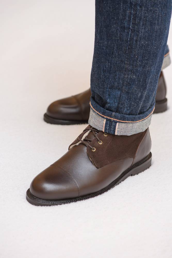 Тёплые зимние мужские ботинки Artisan H.Glass изготовлены в Испании в конструкции Goodyear Welted. Модель названа в честь американского охотника и горного проводника Хью Гласса, который после ранений в схватке с медведем сумел преодолеть боле 300 км ползком и выжил. Внутри модель полностью отделана натуральной овчиной. Верхняя часть выполнена из плотной замши, а нижняя – из телячьей кожи тёмно-коричневого цвета от французской дубильни Tanneries D'Annonay. Модель имеет резиновую подошву и штормовой рант, прошитый по всей окружности.