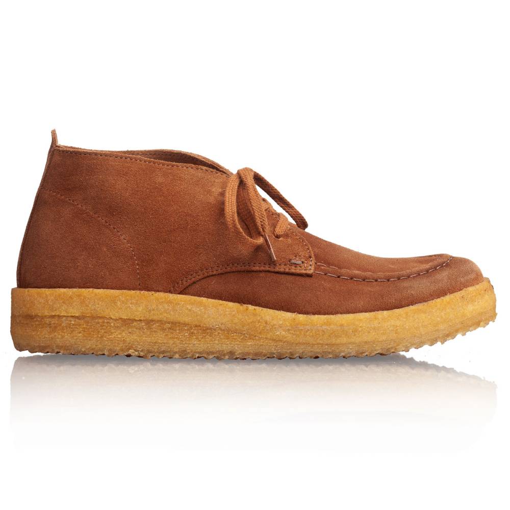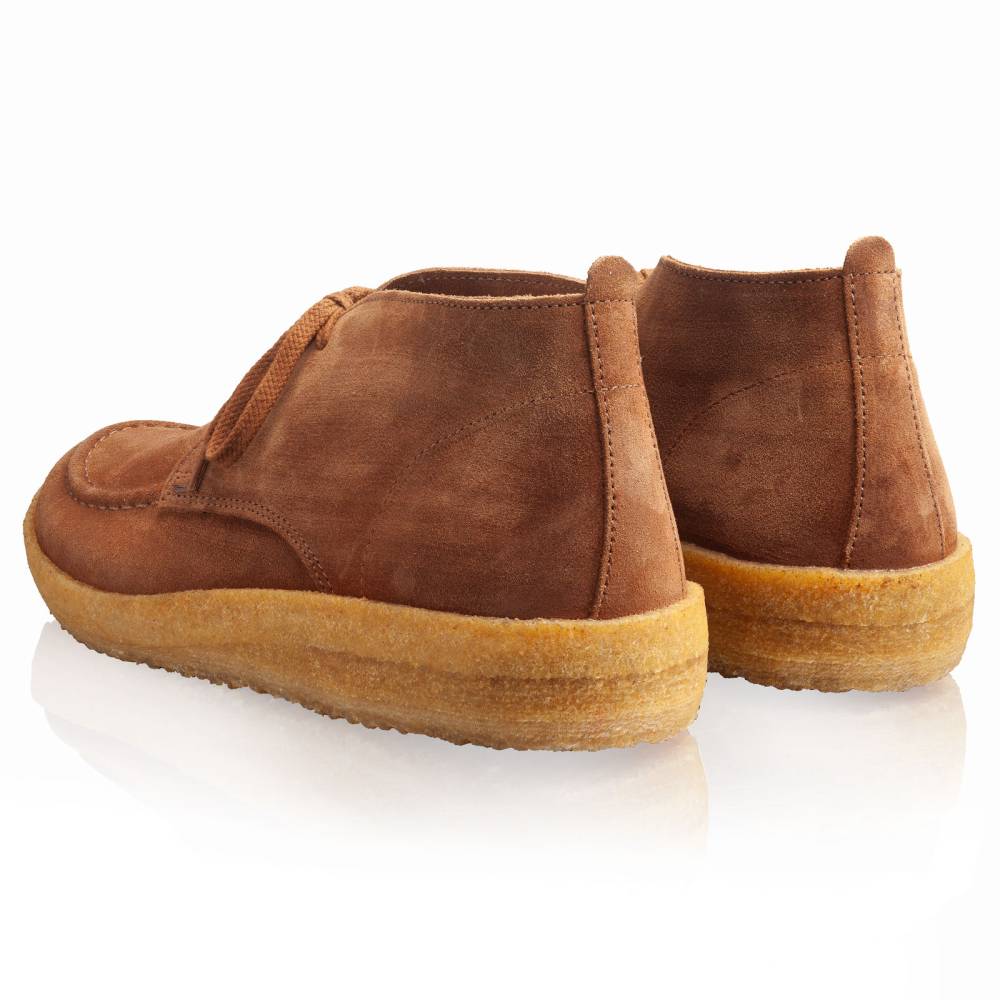 Невысокие мужские ботинки Akiflex подойдут для трёх сезонов, особенно для весны и осени. Модель на массивной фактурной подошве из натурального каучука карамельного оттенка. Верх выполнен из приятной на ощупь итальянской замши коричневого цвета без подкладки. Внутренняя отделка, а также съёмная стелька из гладкой гипоаллергенной кожи растительного дубления. Берцы оснащены тремя отверстиями под шнурки с каждой стороны. В передней части модель украшена полукруглым мокасинным швом, повторяющим линии мыска.