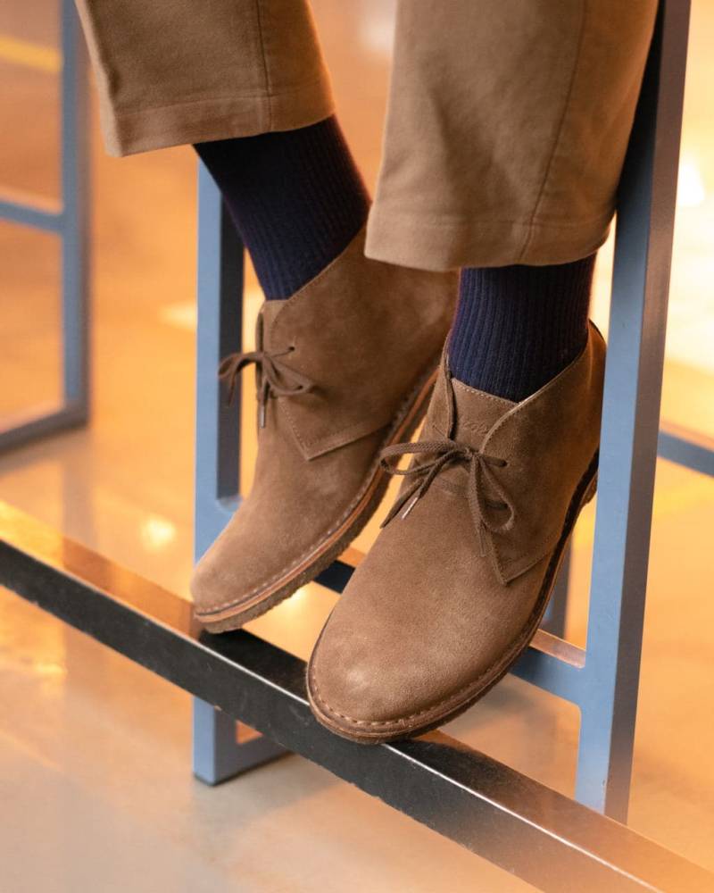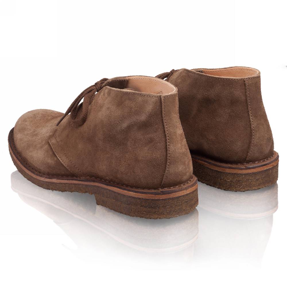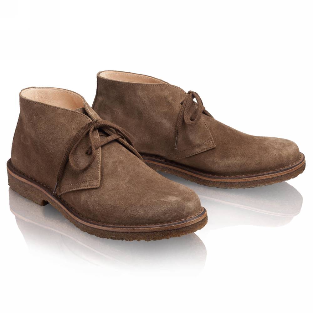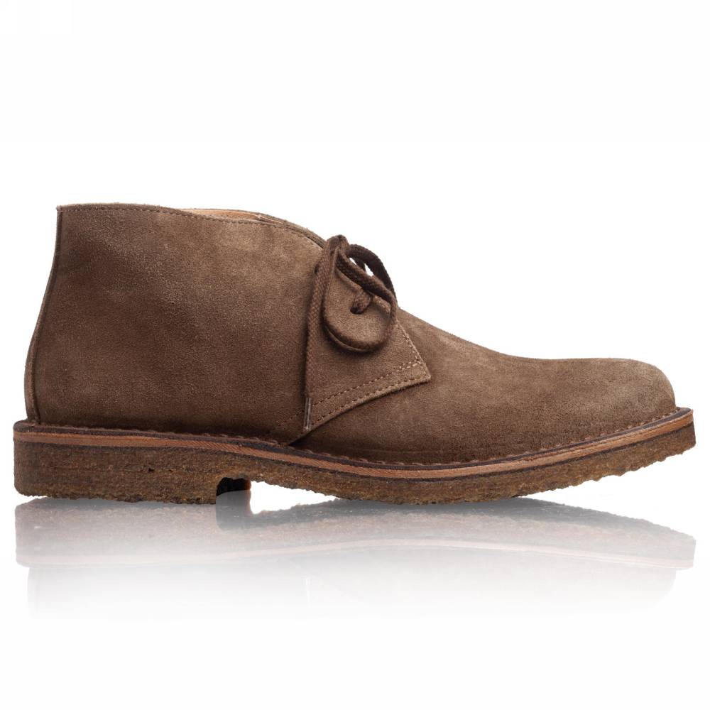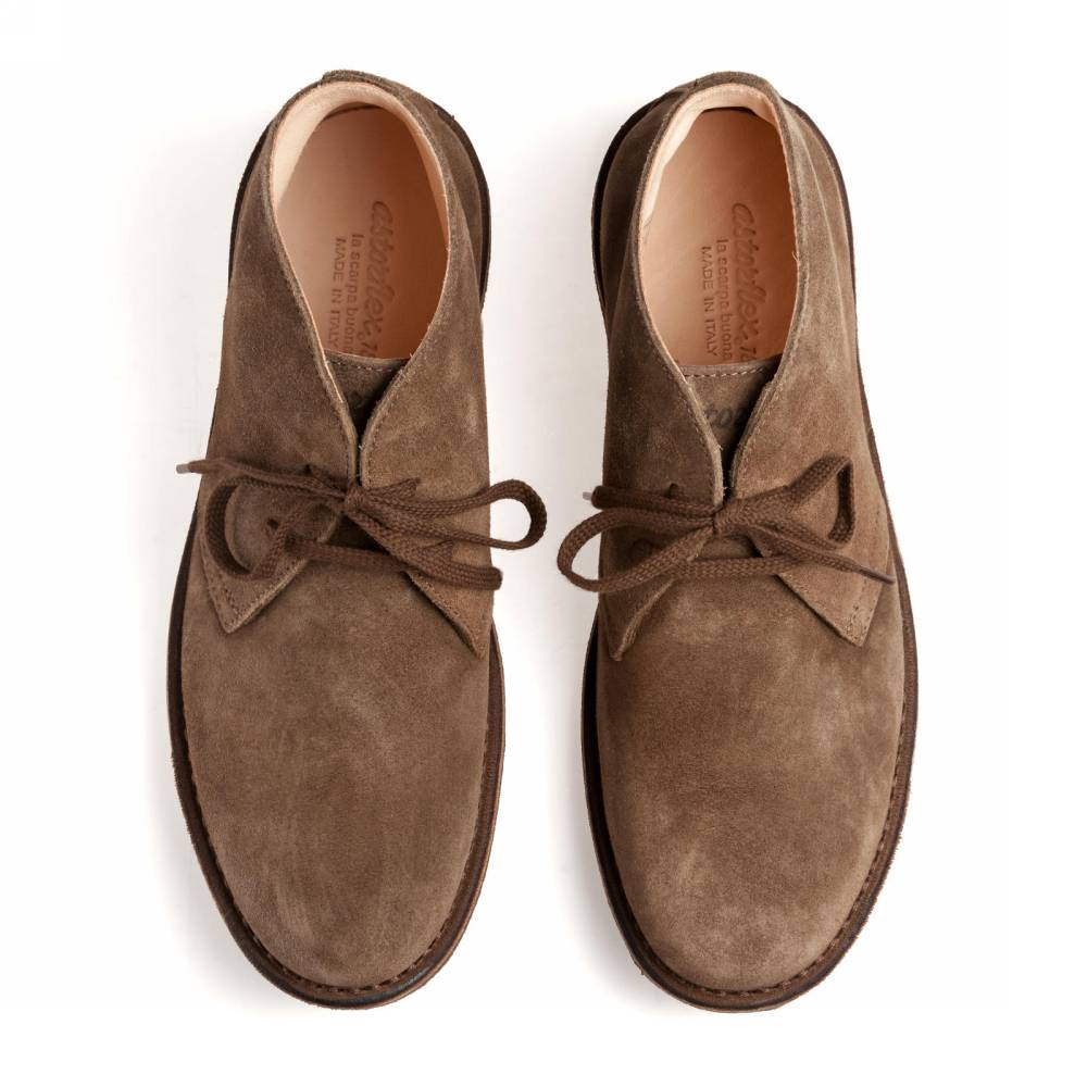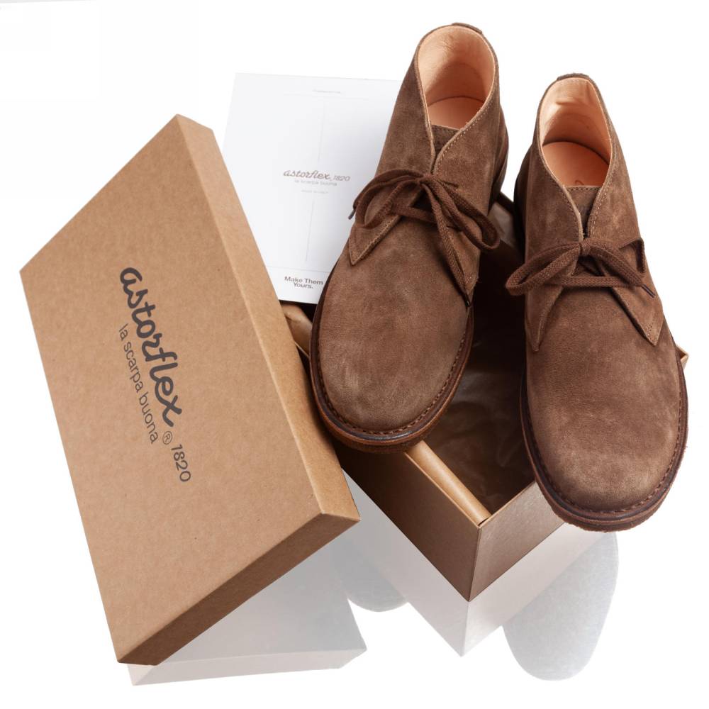 Удобные мужские ботинки чукка итальянского бренда Astorflex. Верх выполнен из плотной замши коричневого цвета. Внутренняя отделка из кожи растительного дубления. Модель имеет мягкую кожаную стельку с пористым материалом снизу. Узнаваемой особенностью данных ботинок является гибкая и упругая подошва из натурального каучука. Обувь сшита в прочной влагостойкой конструкции stitch-down (доппельный метод крепления).