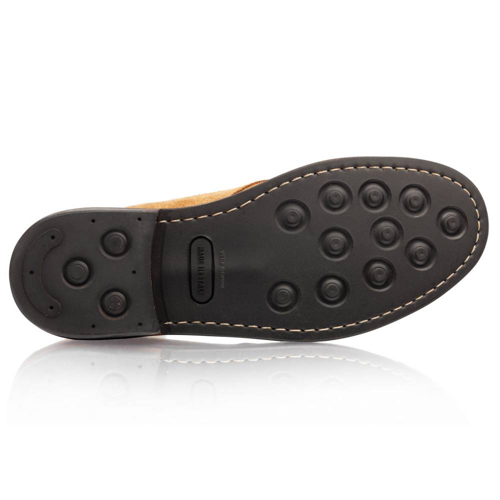 Культовые мужские ботинки чукка Greenflex итальянского бренда Astorflex. Основное отличие от базового варианта — резиновая подошва вместо креповой. Верх выполнен из плотной тосканской замши светло-коричневого цвета. Внутренняя отделка из гипоаллергенной кожи растительного дубления. Модель имеет мягкую кожаную стельку с пористым материалом снизу. Практичная резиновая подошва. Пара сшита в прочной влагостойкой конструкции stitch-down (доппельный метод крепления).
