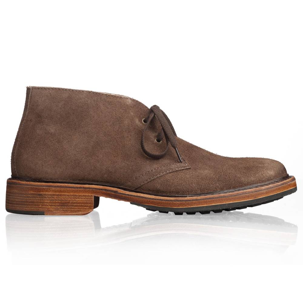 Удобные мужские ботинки чукка итальянской марки Astorflex. Верх выполнен из плотной тёмно-коричневой замши. Подкладка из гипоаллергенной кожи растительного дубления. Модель имеет мягкую кожаную стельку с пористым материалом снизу. Гибкая и упругая кожаная подошва снабжена резиновой профилактикой бренда St. Moritz с рифлёным протектором. Обувь сшита в прочной влагостойкой конструкции stitch-down (доппельный метод крепления).