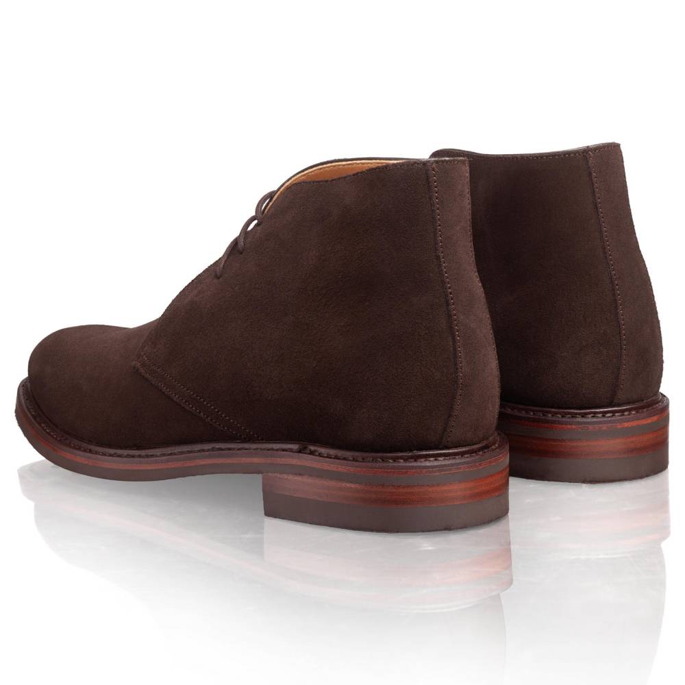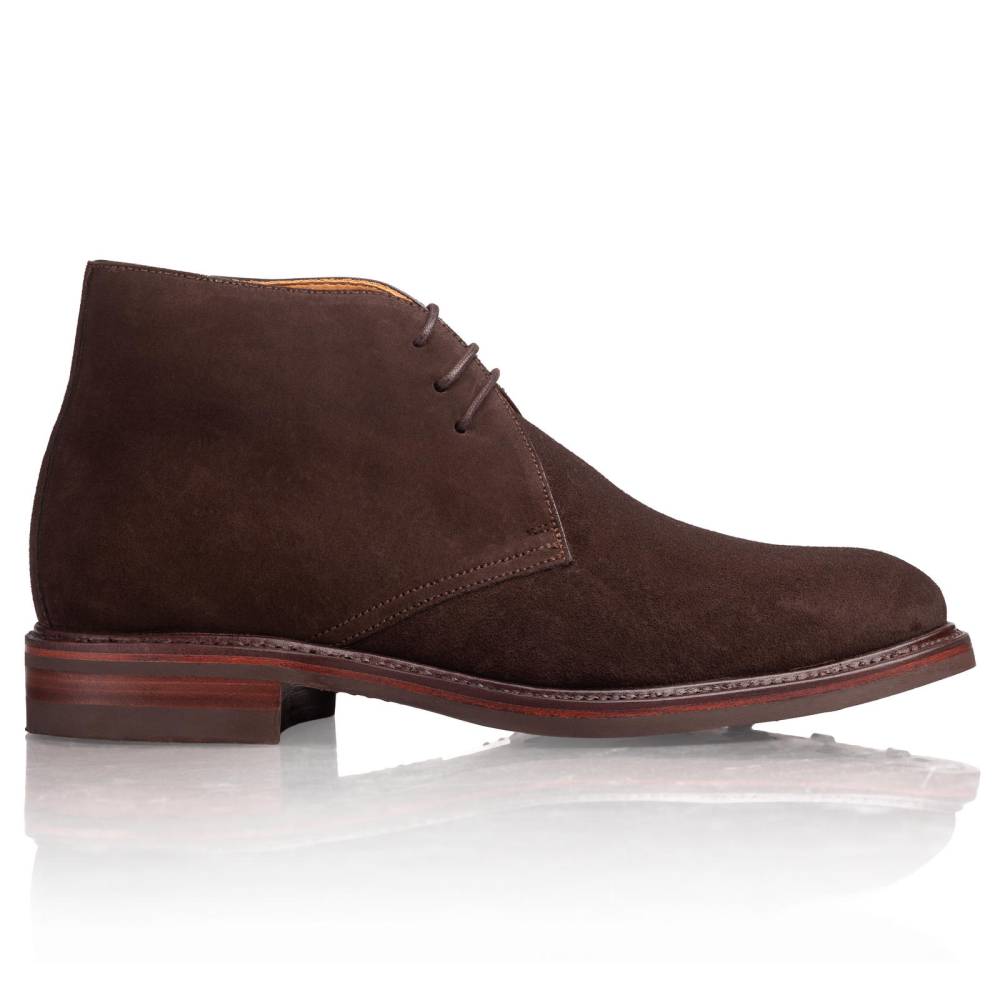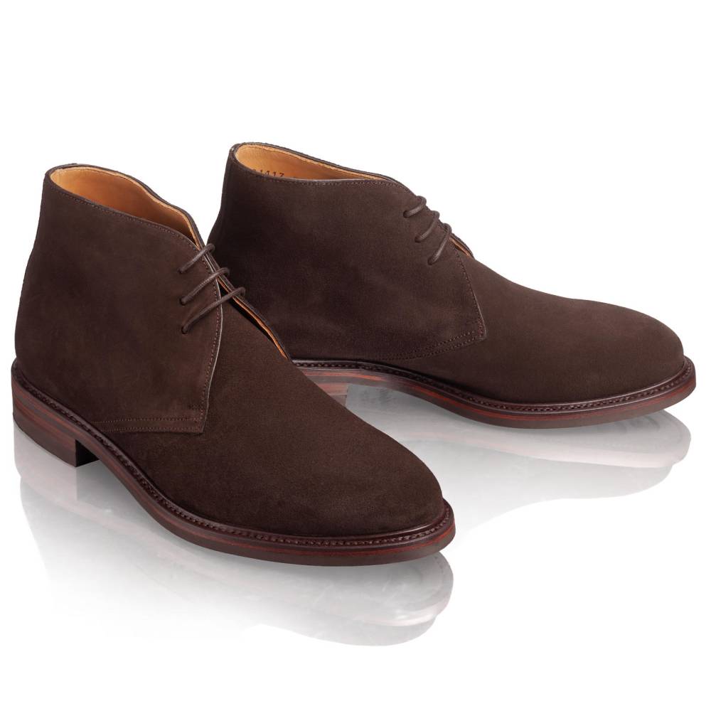 Классические мужские ботинки-чукка от Berwick выполнены из высококачественной телячьей замши Superbuck. Это плотная замша с коротким ворсом, отличающаяся высокой прочностью, комфортом и способностью со временем благородно стареть, приобретая уникальный внешний вид. Модель оснащена кожаной промежуточной подошвой (мидсол) и прочной резиновой подошвой Dainite, произведенной в Англии. Подошва Dainite отличается высокой износостойкостью. Конструкция дополнена штормовым рантом (storm welt). Это повышает влагоустойчивость обуви, эффективно препятствуя проникновению влаги внутрь.