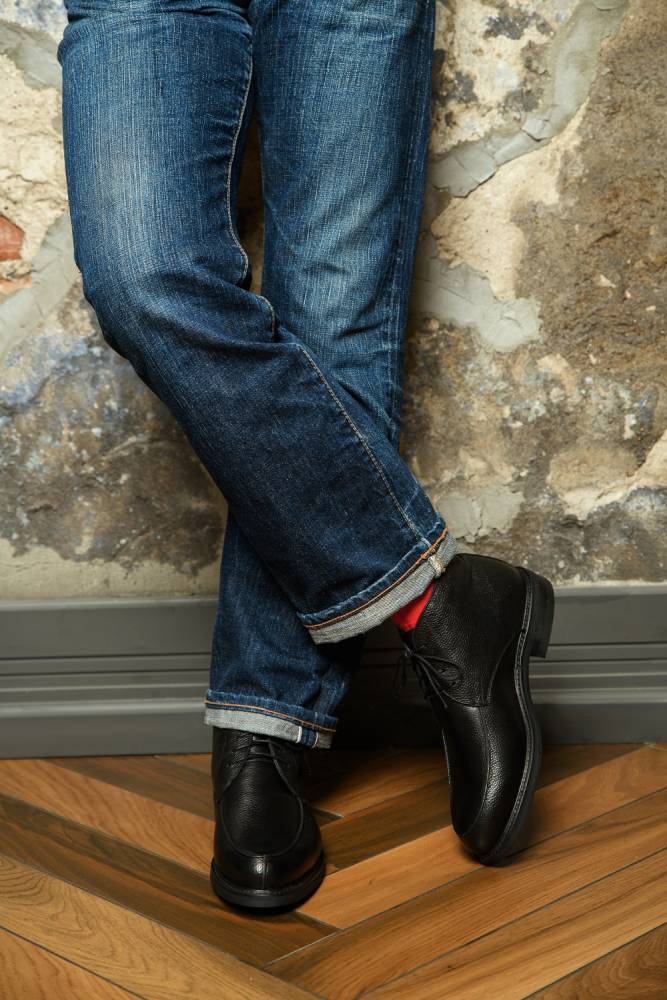 Модель не самая строгая, но в то же время довольно универсальная: она хорошо сочетается как с плотными брюками в стиле casual, так и с более формальными брюками. Колодка 128 относится к широким (полнота G) и подходит людям с широкой стопой и высоким подъёмом. Особенностью этой колодки также является округлый мыс с большим пространством в области пальцев.