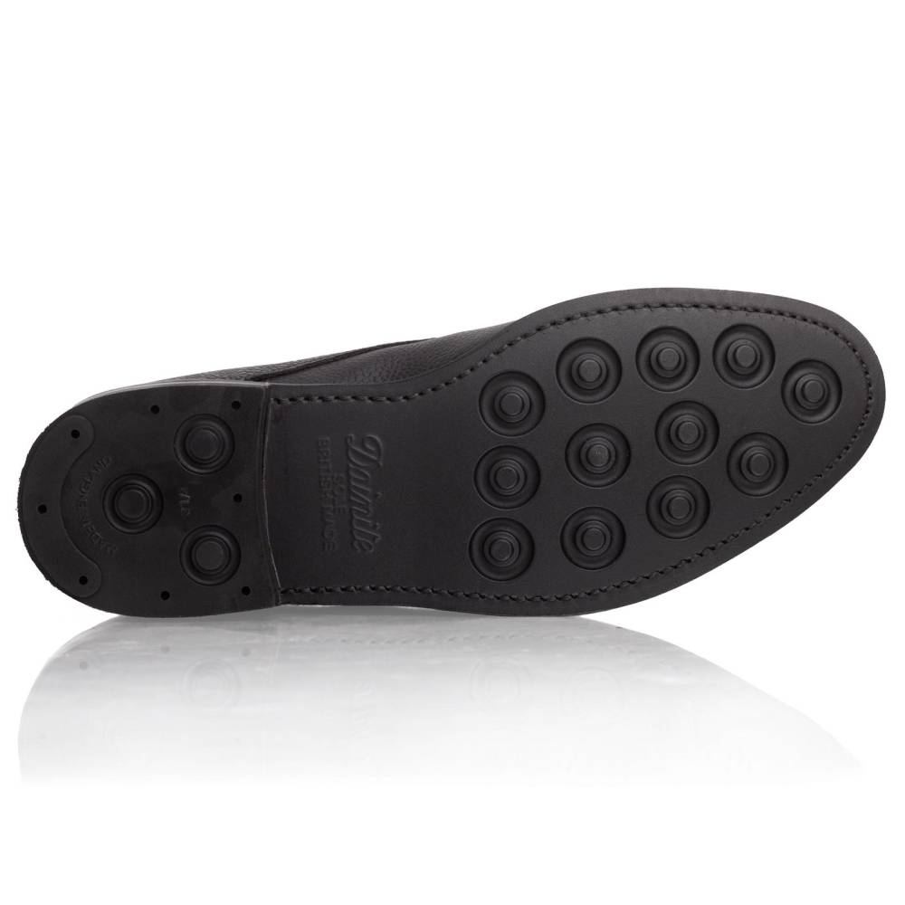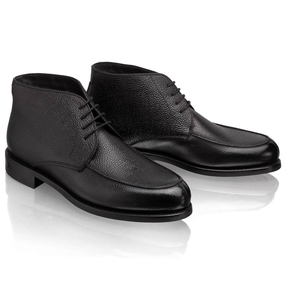 Тёплые мужские ботинки испанской фирмы Berwick для холодной погоды и длительных прогулок. Верх обуви выполнен из плотной телчьей кожи с зернистой фактурой чёрного цвета. Внутренняя отделка за исключением стельки выполнена из натурального меха (овчина). Функциональной особенностью модели является прочная резиновая подошва Dainite, прошитая по всей окружности, а эстетической – так называемый норвежский мыс (он же – split toe). Конструкция Goodyear Welted.