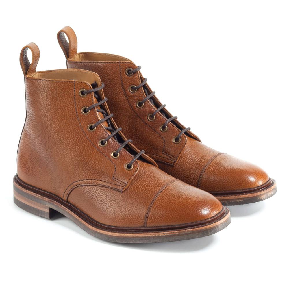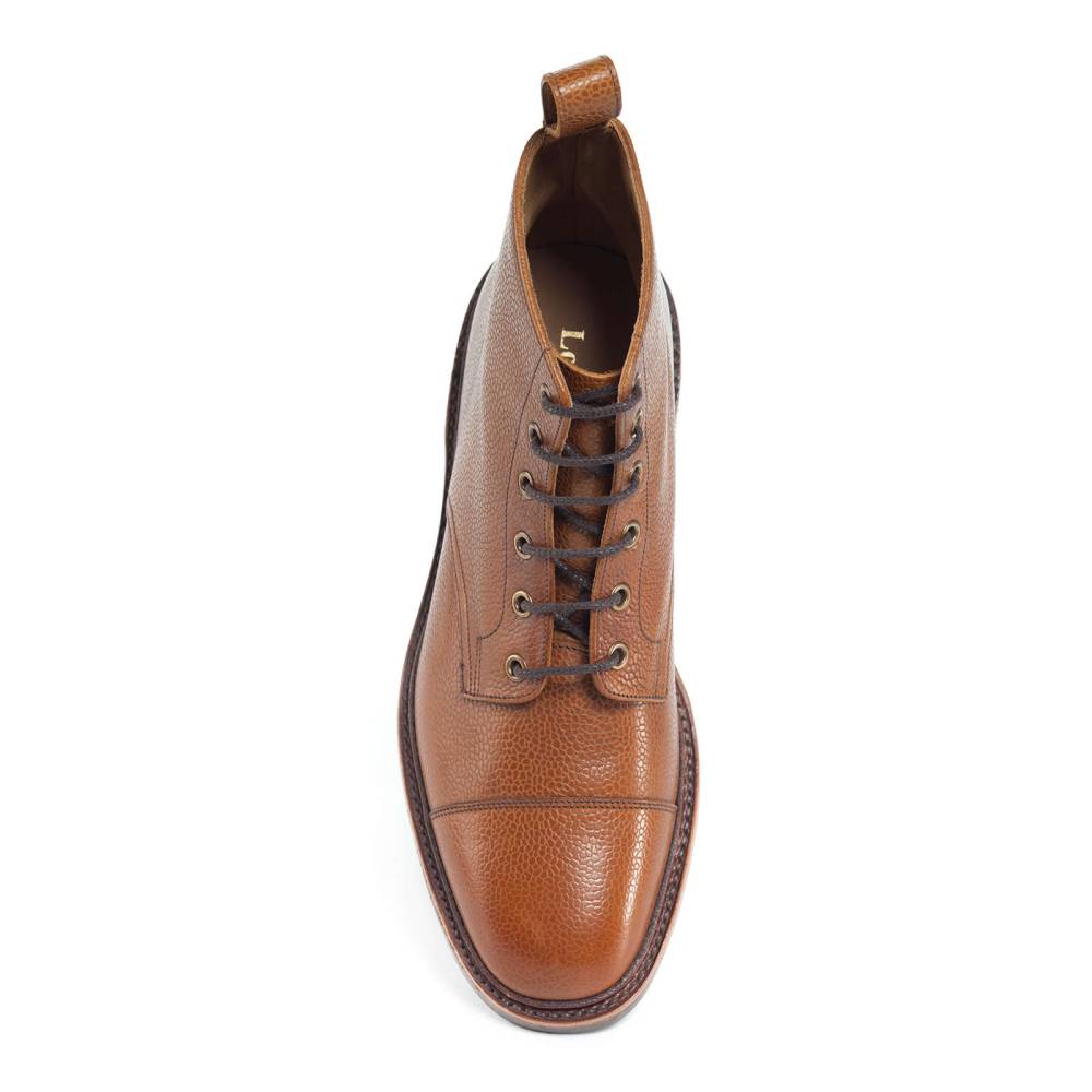 Ботинки Loake Dovedale из коллекции Loake 1880. Верхняя часть выполнена из плотной зернистой телячьей кожи светло-коричневого цвета. Внутренняя отделка из тонкой мягкой кожи. На нижнюю часть подошвы установлена прочная ребристая резина Victory. Конструкция Goodyear.