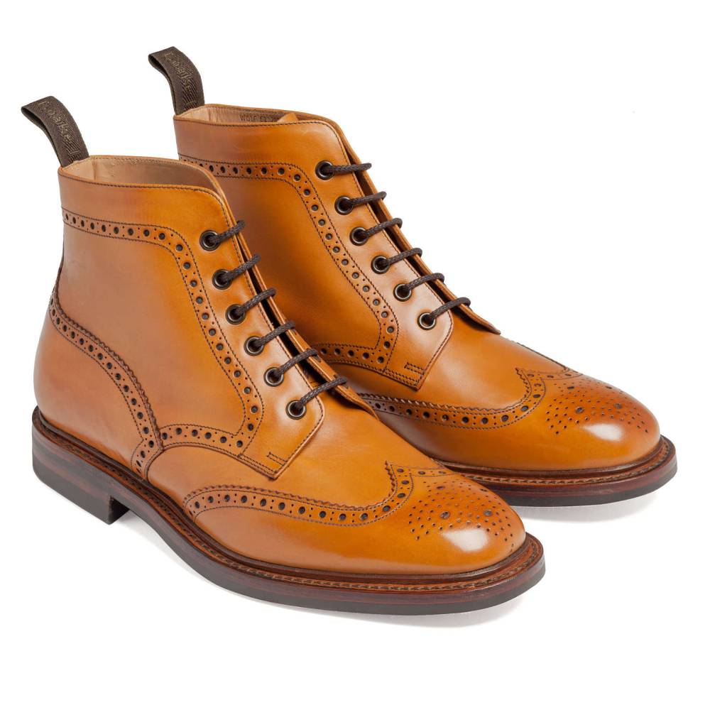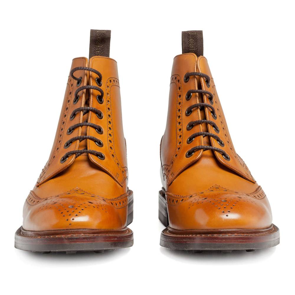 Тёплые зимние ботинки броги Loake Wolf из флагманской коллекции Loake 1880. Верхняя часть выполнена из гладкой телячьей кожи светло-коричневого цвета. Модель имеет широкий штормовой рант, который обеспечивает влагоустойчивость подошвы. Внутри ботинки полностью отделаны густым и мягким овечьим мехом, в том числе и стелька. Подошва выполнена из кожи и прочной резины английской фирмы Dainite. Конструкция Goodyear Welted.