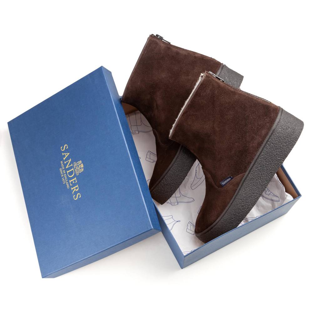 Лимитированная модель зимних ботинок Jamtland Curling Boot от английского бренда Sanders. Ботинок для керлинга Jamtland — это неподвластное времени сочетание классического дизайна и безупречного мастерства. Эта пара, выпущенная в честь 150-летнего юбилея компании, сочетает в себе вековые традиции ручного производства и комфорт. Сделано вручную на исторической фабрике бренда. Верх из премиальной замши коричневого цвета от знаменитого завода Charles F. Stead. Подкладка и съёмная стелька из натуральной овчины, которая согреет даже в самые холодные дни. Подошва из натурального крепового каучука для превосходного сцепления и долговечности. Молния сзади для быстрого надевания и стильная нашивка с логотипом спереди.