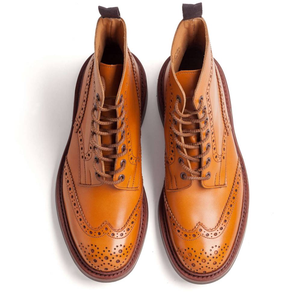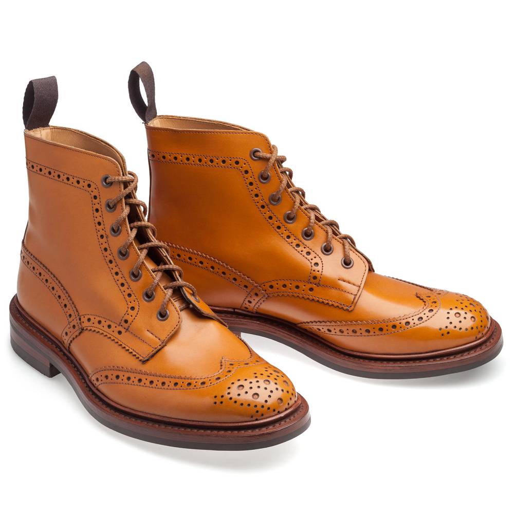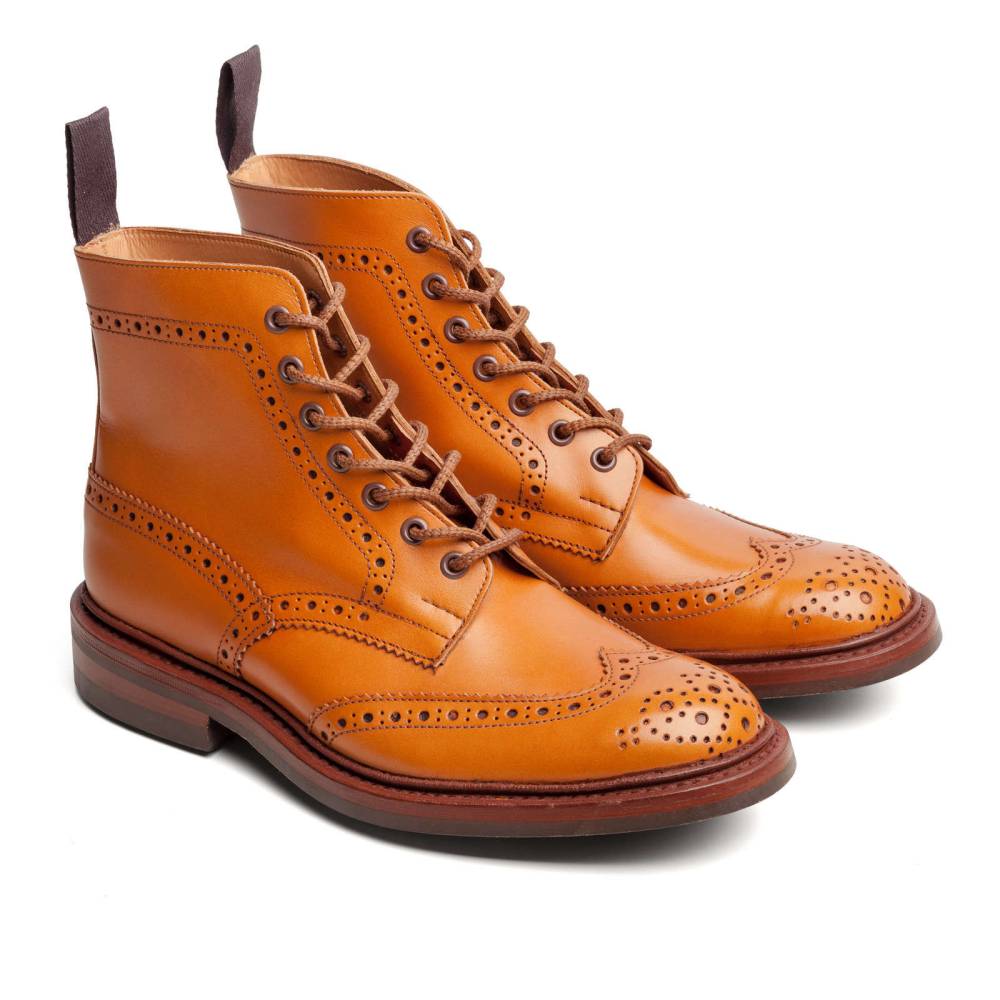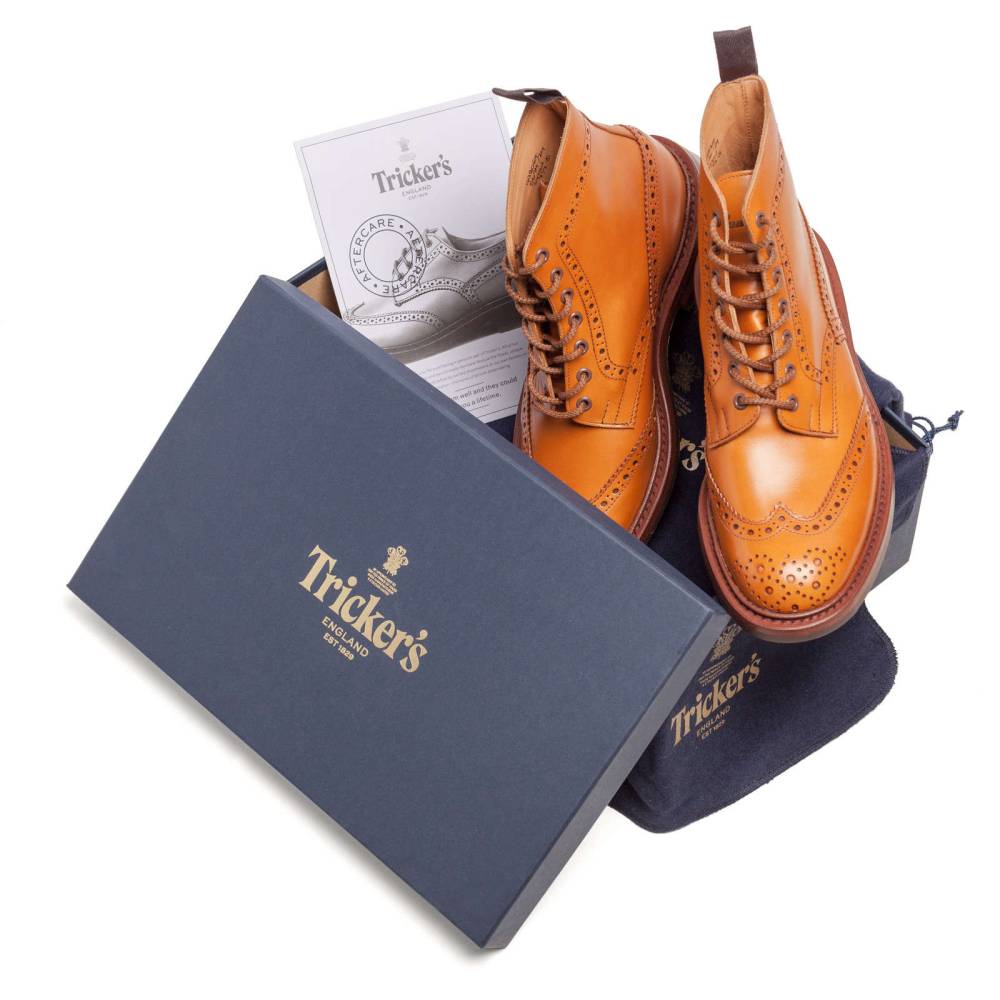 Культовые мужские ботинки Stow от старейшей английской фабрики Tricker's. Верхняя часть выполнена из плотной гладкой телячьей кожи светло-коричневого цвета. Модель имеет широкий штормовой рант, который обеспечивает хорошую влагоустойчивость подошвы. Пяточная часть дополнена текстильной петлёй, что позволяет легко и быстро надевать ботинки. Подошва выполнена из прочной резины английской фирмы Dainite. Конструкция Goodyear Welted.