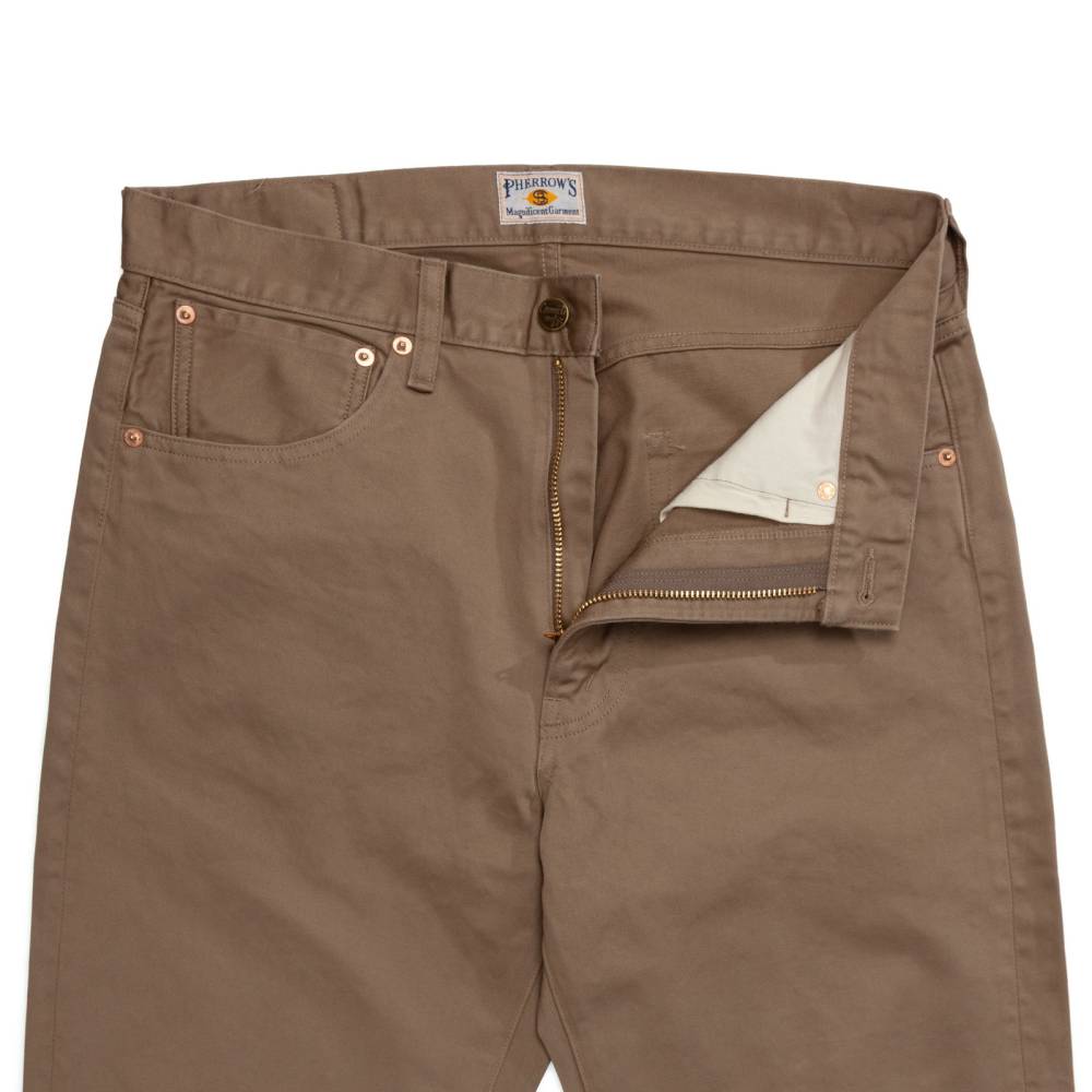 Классические брюки с пятью карманами японского бренда Pherrow's. Выполненные из оригинального винтажного атласа (sateen). Выбор ткани вдохновлен повседневным стилем «вестерн», который получил невероятную популярность на востоке США на рубеже 1950-х и 1960-х годов. В отличие от грубого денима, плотный хлопковый атлас обладает более гладкой, благородной текстурой, оставаясь при этом исключительно прочным и износостойким. Особое внимание уделено методу окрашивания. Эти брюки, подобно хорошему дениму, со временем становятся только выразительнее: проявляется индивидуальный «фейдинг», а ткань мягко подстраивается под особенности вашей фигуры.